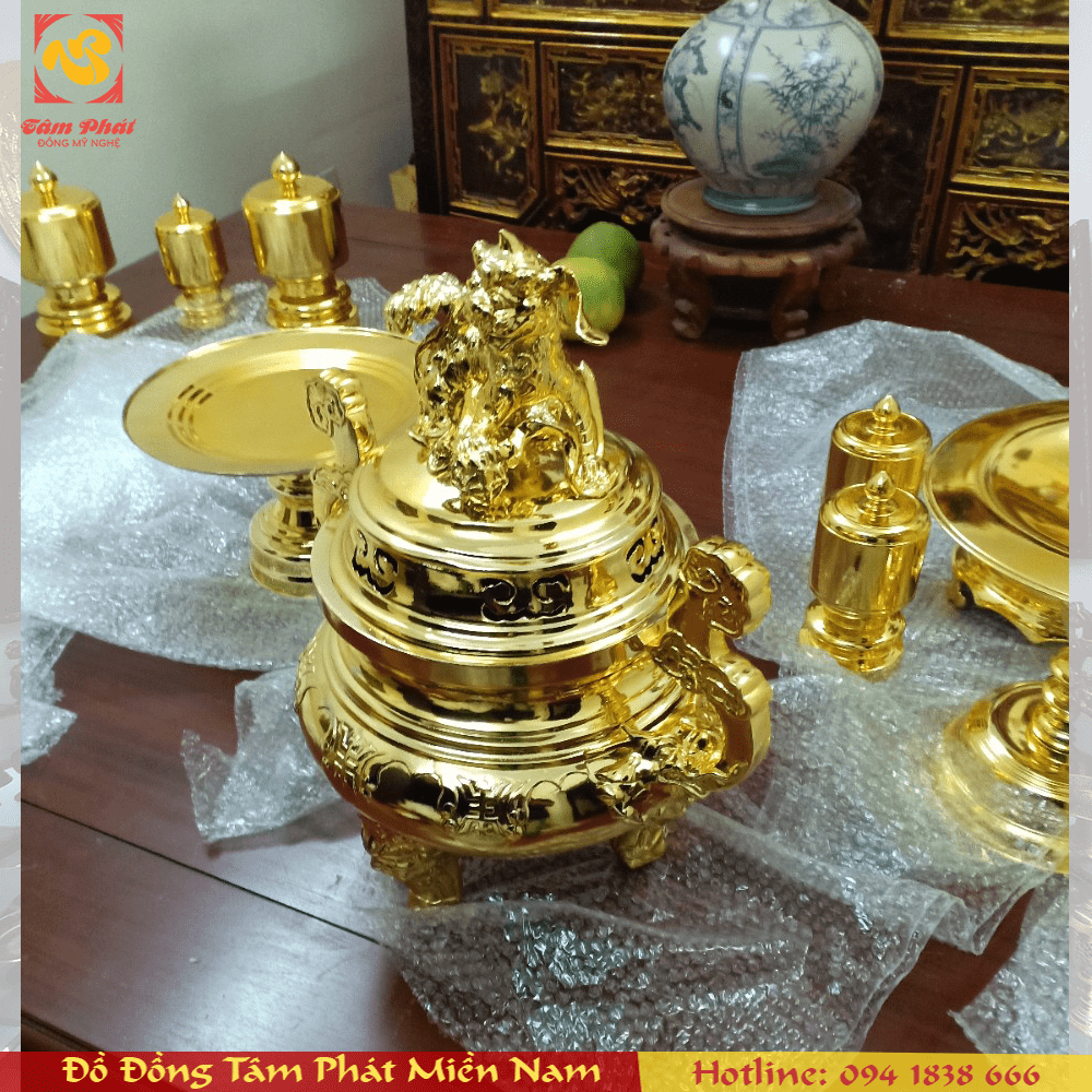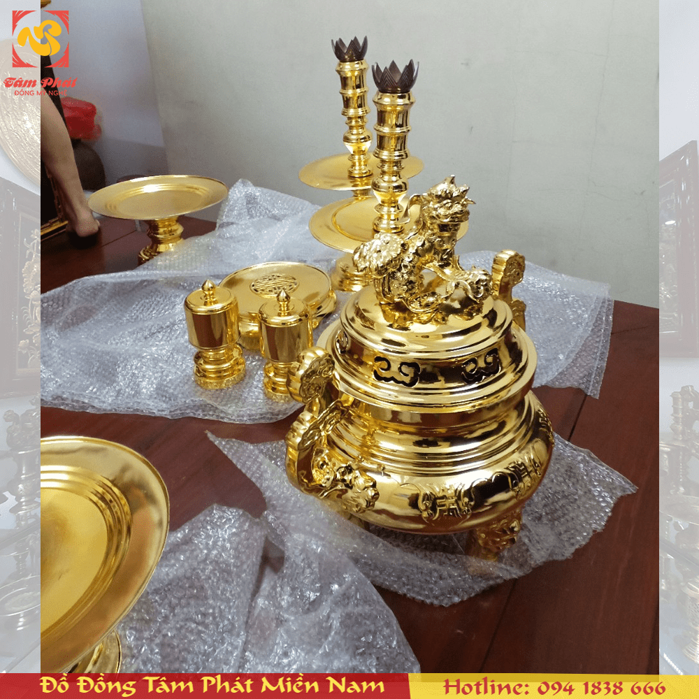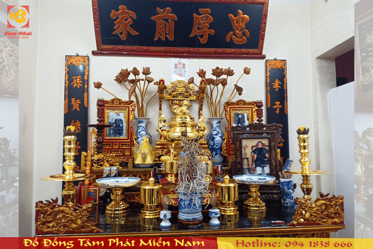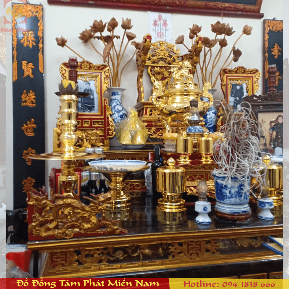 Bàn giao bộ đồ thờ mạ vàng 24K và đầy đủ phụ kiện cho gia đình chú Hải tại Bình Dương