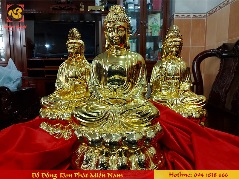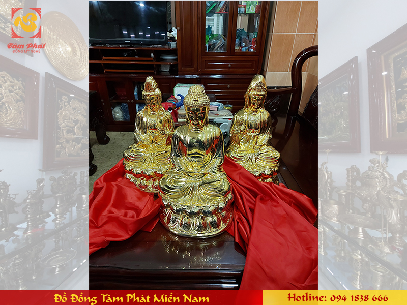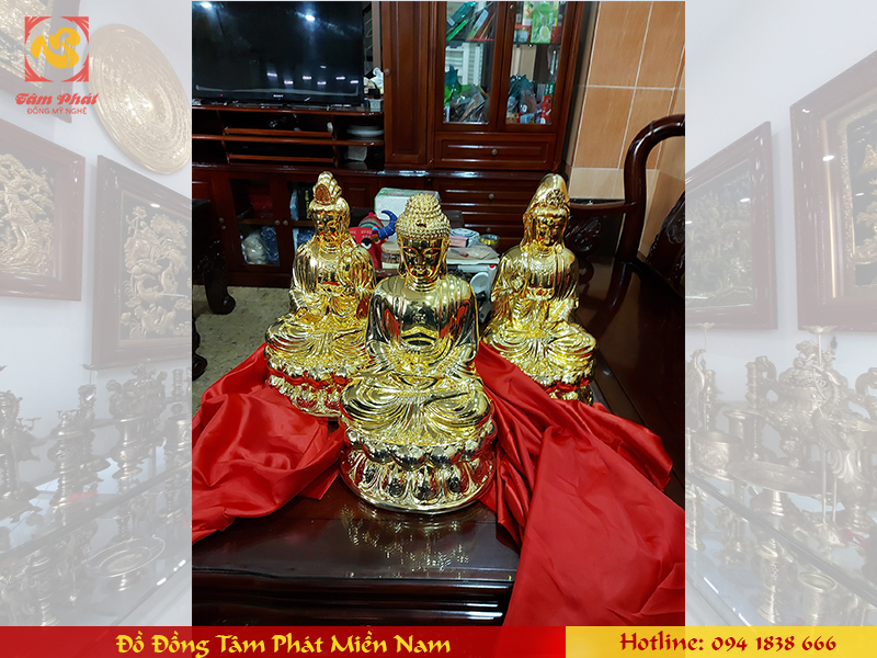 Bàn giao bộ Tượng Tam Thánh Phật cao 48cm mạ vàng 24k cho anh Trực ở Q6 -TpHCM