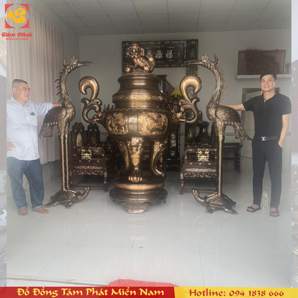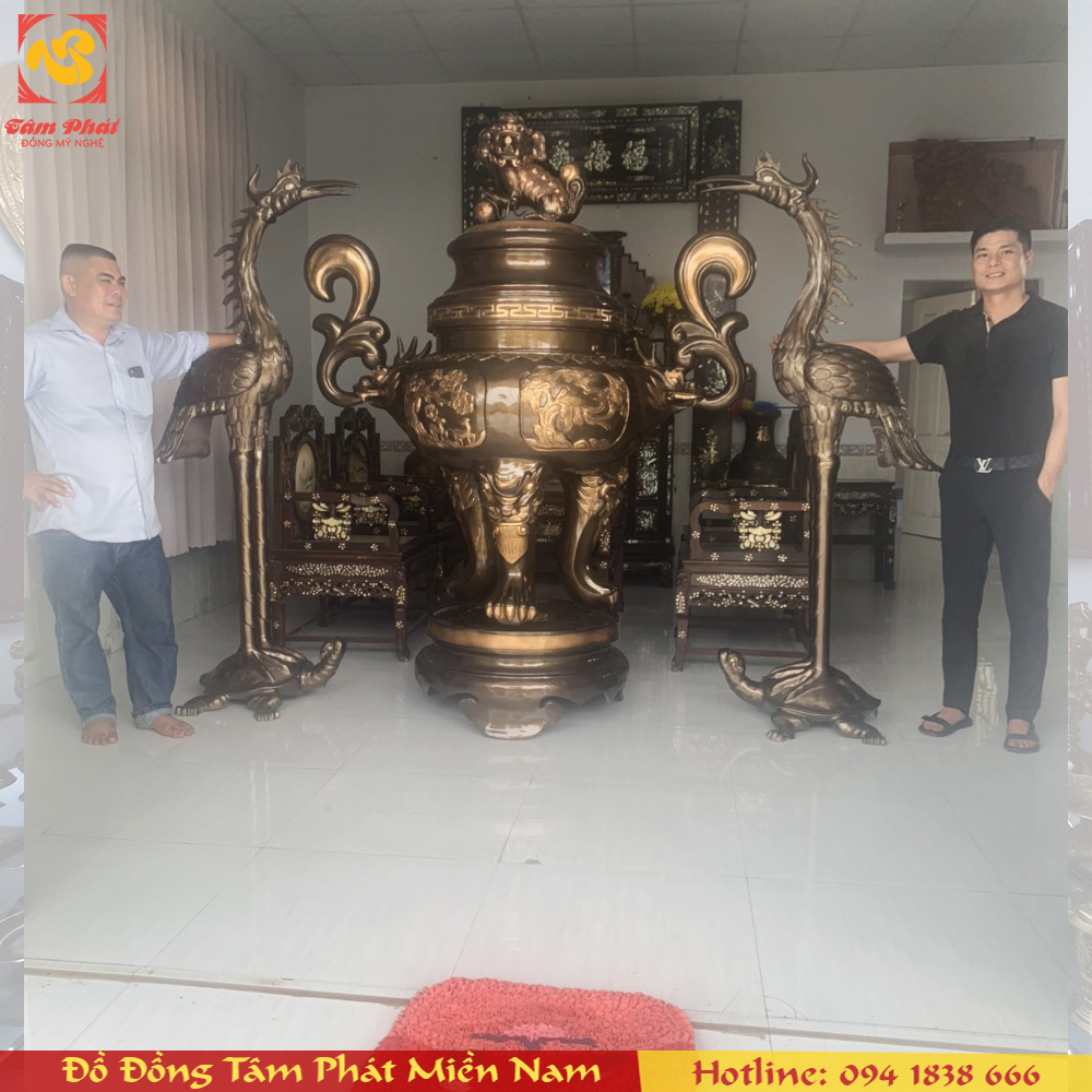 Bàn Giao - Lắp đặt thành công Đỉnh đồng cao 2m3 nặng 600kg & Hạc 1m97 tại Cần Giờ - TP.HCM