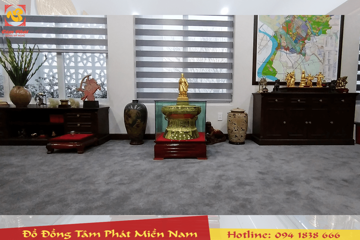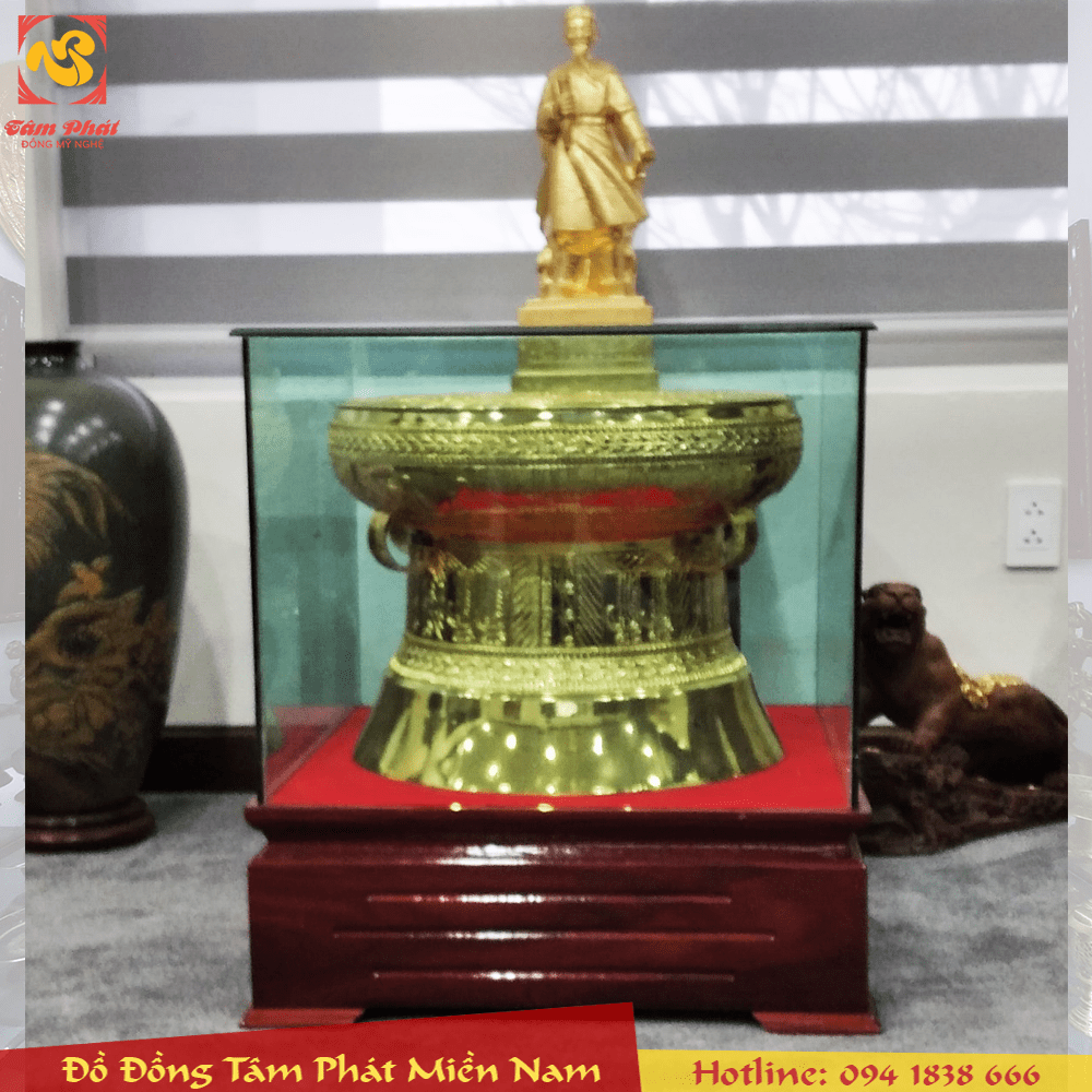 - Quả Trống Đồng trưng bày dát vàng 9999 sắc nét