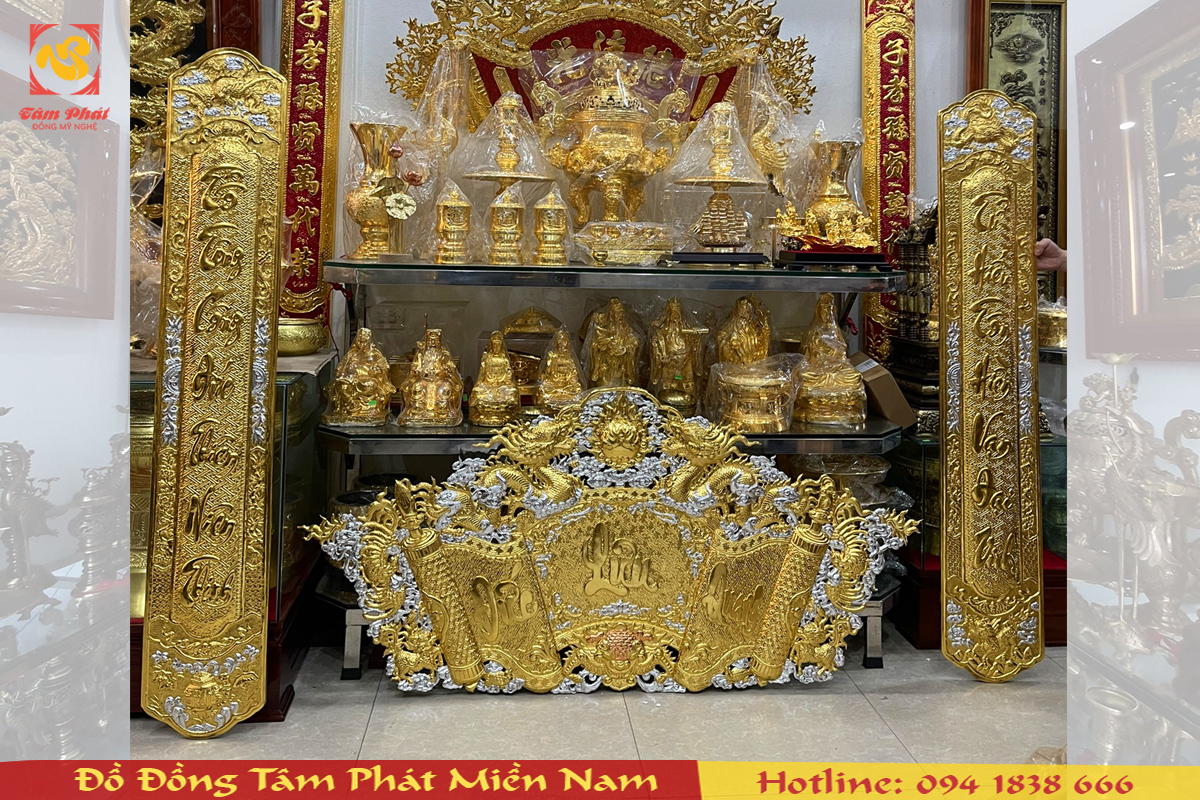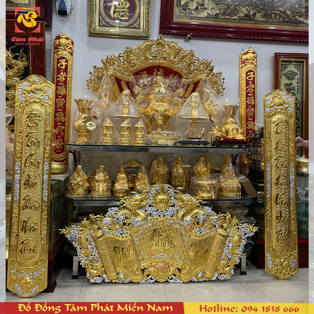 Tags : câu đối cuốn thư đại tự dát vàng, cuốn thư câu đối, đồ thờ bằng đồng, đồ đồng thờ cúng
