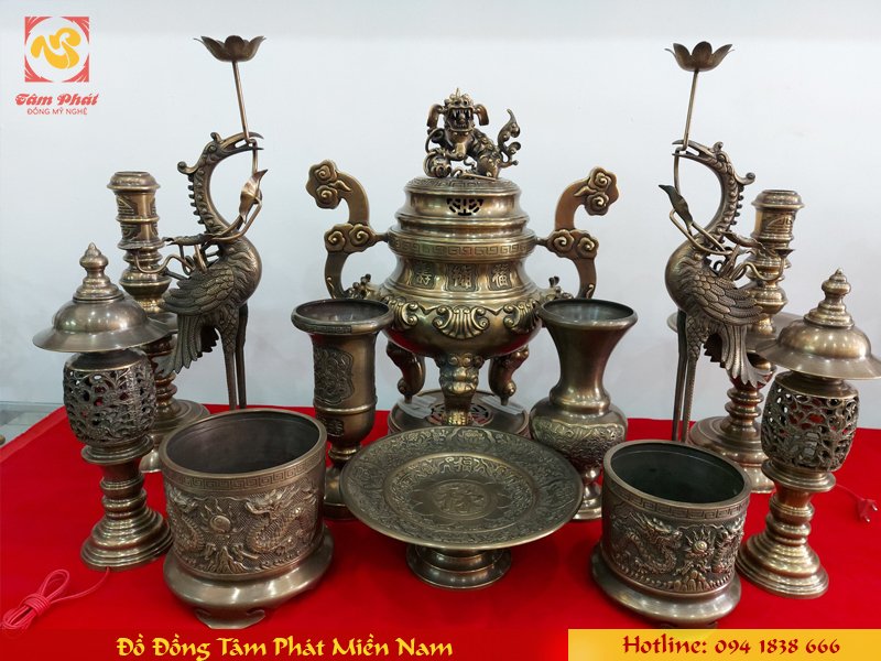 Đồ đồng thờ cúng đầy đủ hiện đang được bán rộng rãi trên thị trường. Với sự khéo léo tinh tế của người thợ làng nghề đúc đồng đã tạo nên những sản phẩm đồ đồng thờ cúng vô cùng chất lượng cho nhu cầu của khách hàng hiện nay.