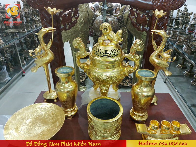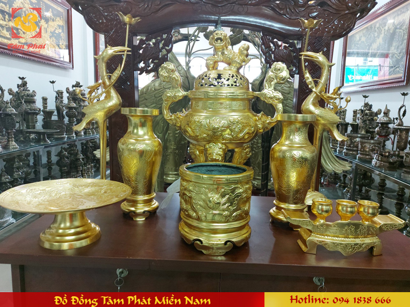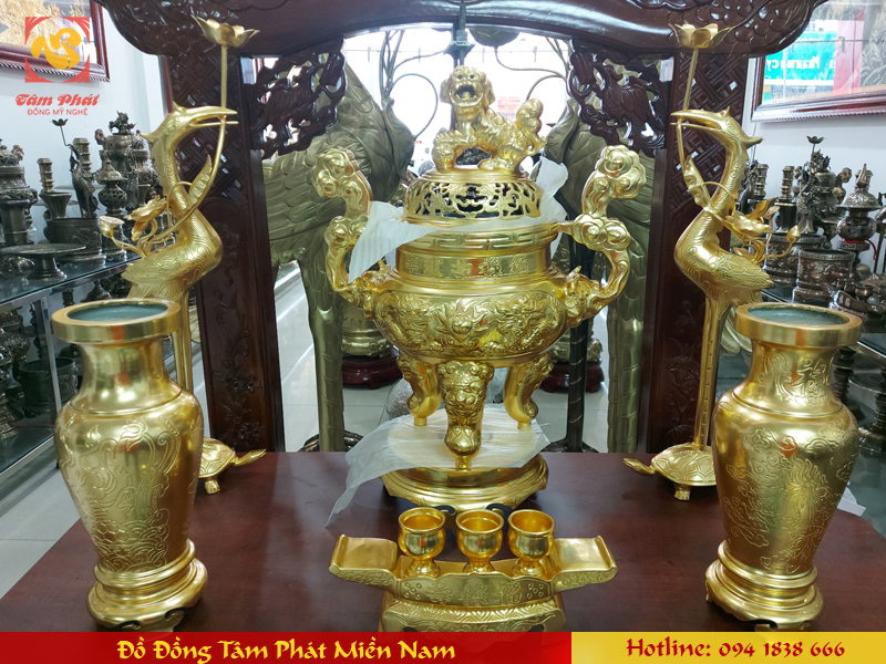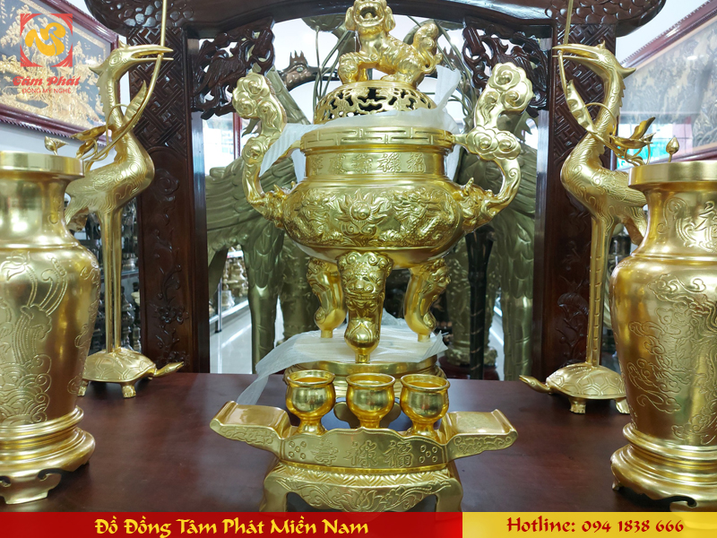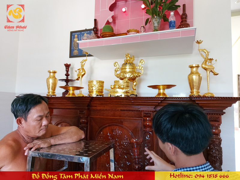 Bàn Giao Lắp Đặt Bộ Đồ Thờ Đỉnh Rồng 55cm Đồng Đỏ Dát Vàng 9999 cho Anh Sỹ Thủ Dầu Một