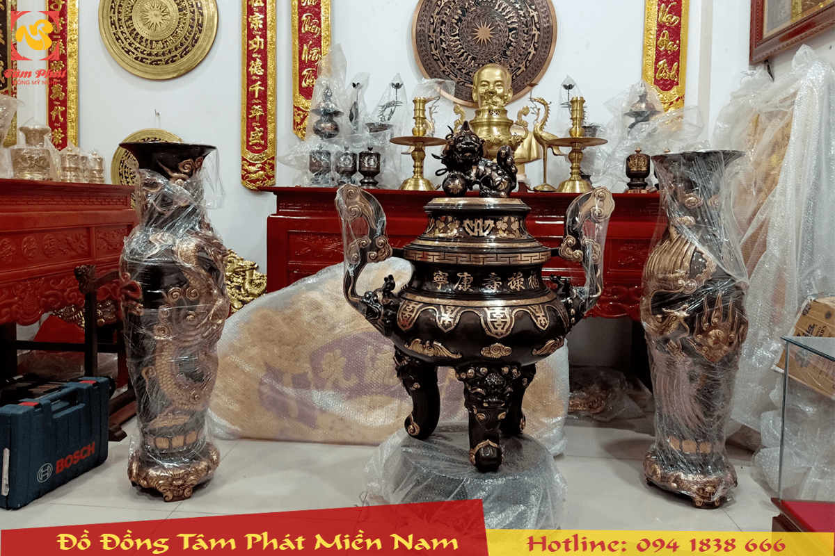 >>> Bộ đồ thờ bằng đồng hai công nghệ chạm sòi
