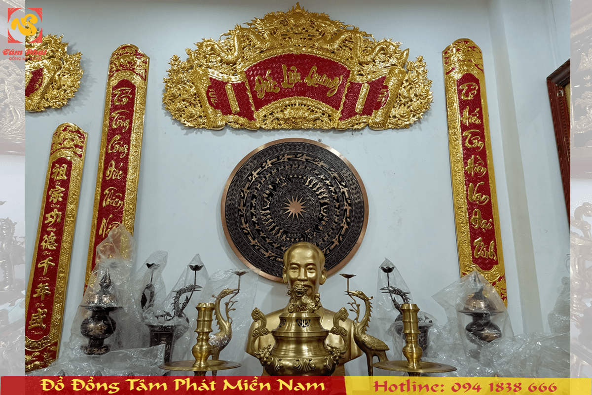 – Bộ đồ thờ bằng đồng cát tút được đúc thủ công bởi các nghệ nhân lành nghề tại làng nghề đúc đồng truyền thống Vạn Điểm (cái nôi nghề đúc với hơn 900 năm lịch sử)