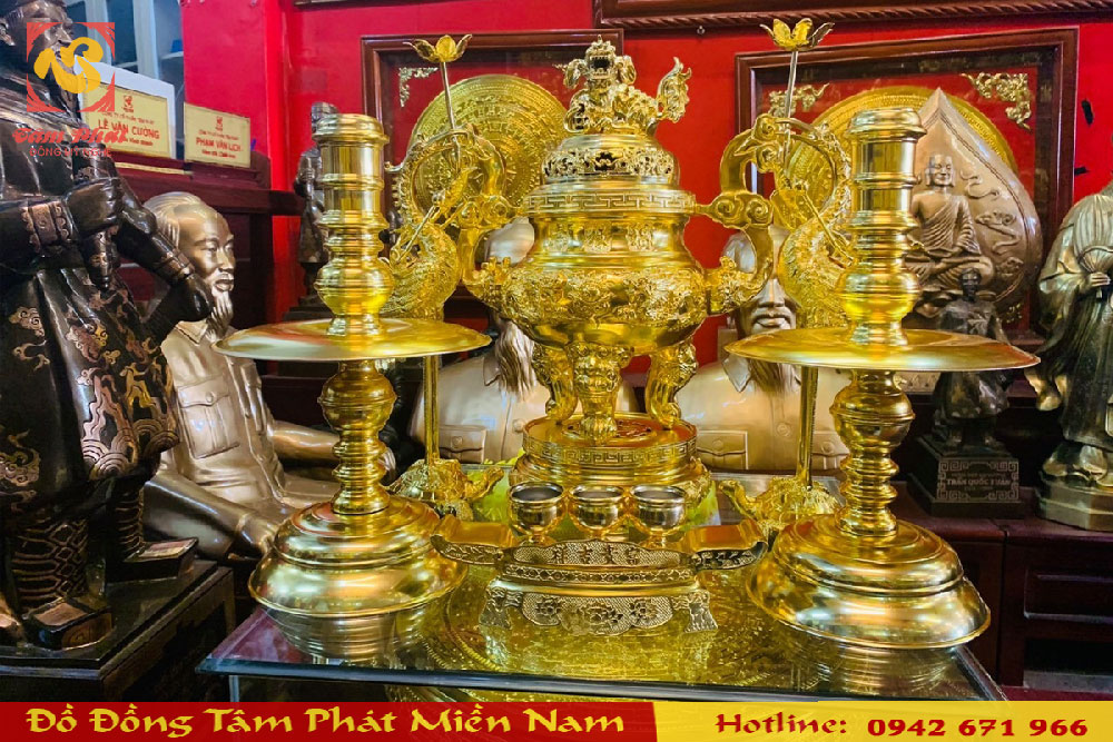 Xem thêm >>>> Bộ đồ thờ bằng đồng đỏ mạ vàng 24k