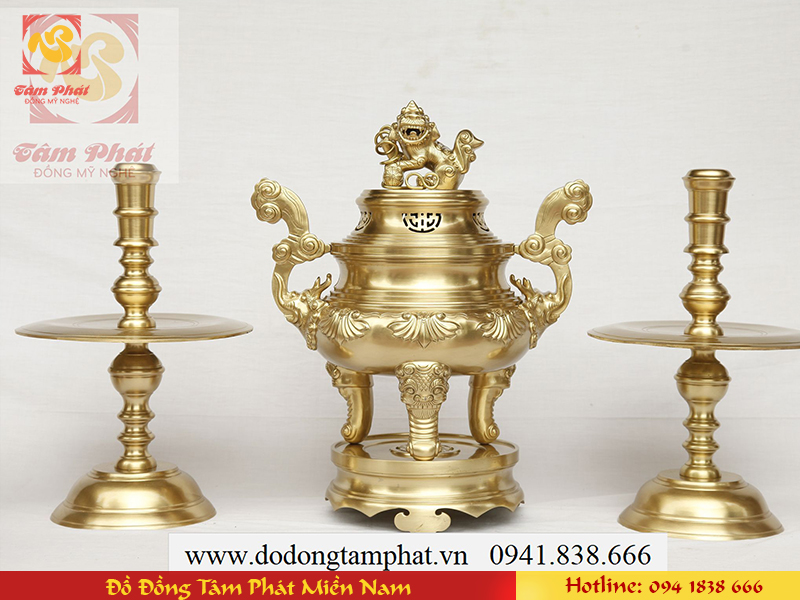 Sản phẩm bao gồm một chiếc đỉnh cao 50cm và cặp chân nến cao 42cm. Với kích thước này, khả năng ứng dụng của bộ đồ thờ là vô cùng đa dạng.