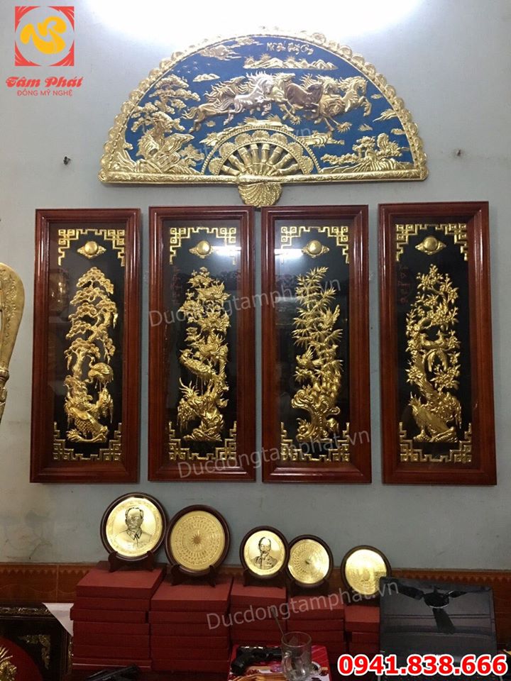 Mục đích sử dụng: Bộ tranh Tứ quý bằng đồng khung rời 40x110cm là bức tranh đồng cao cấp, độc đáo, giàu ý nghĩa phong thủy sâu sắc. Tác phẩm này được Tâm Phát sản xuất công phu từ đồng cao cấp, có tạo hình đẹp với màu sắc tinh xảo. Bức tranh rất được ưa chuộng dùng làm vật trang trí nội thất phong thủy và quà tặng vô cùng ý nghĩa.