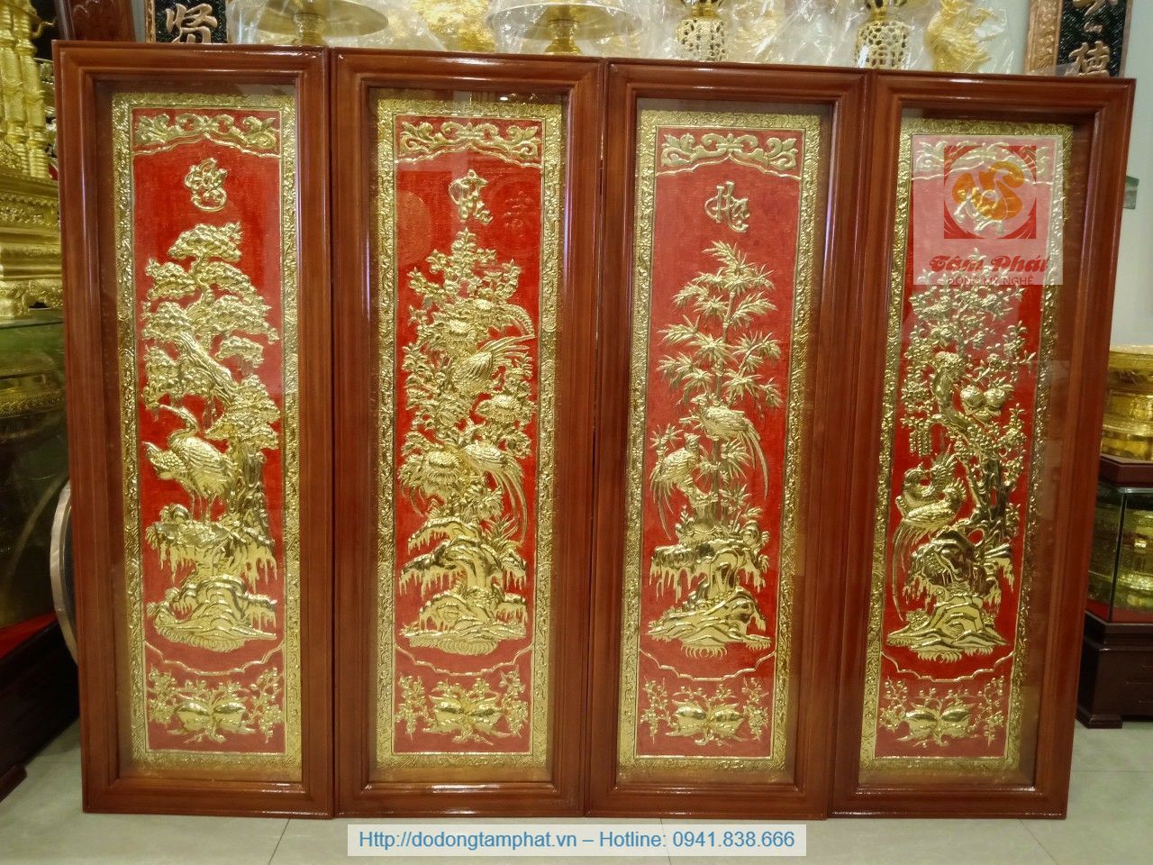 Tên sản phẩm: Bộ tranh Tứ quý bằng đồng khung rời 40x110cm