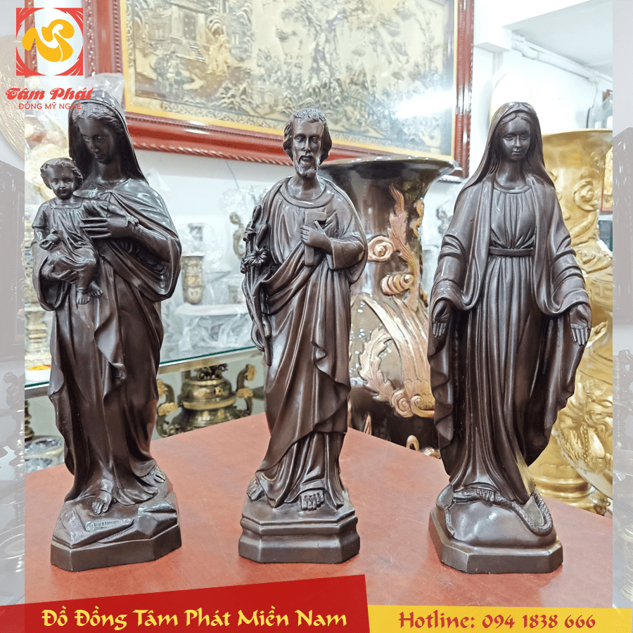 Bộ Tượng Công Giáo Bằng Đồng Vàng Hun Giả Cổ