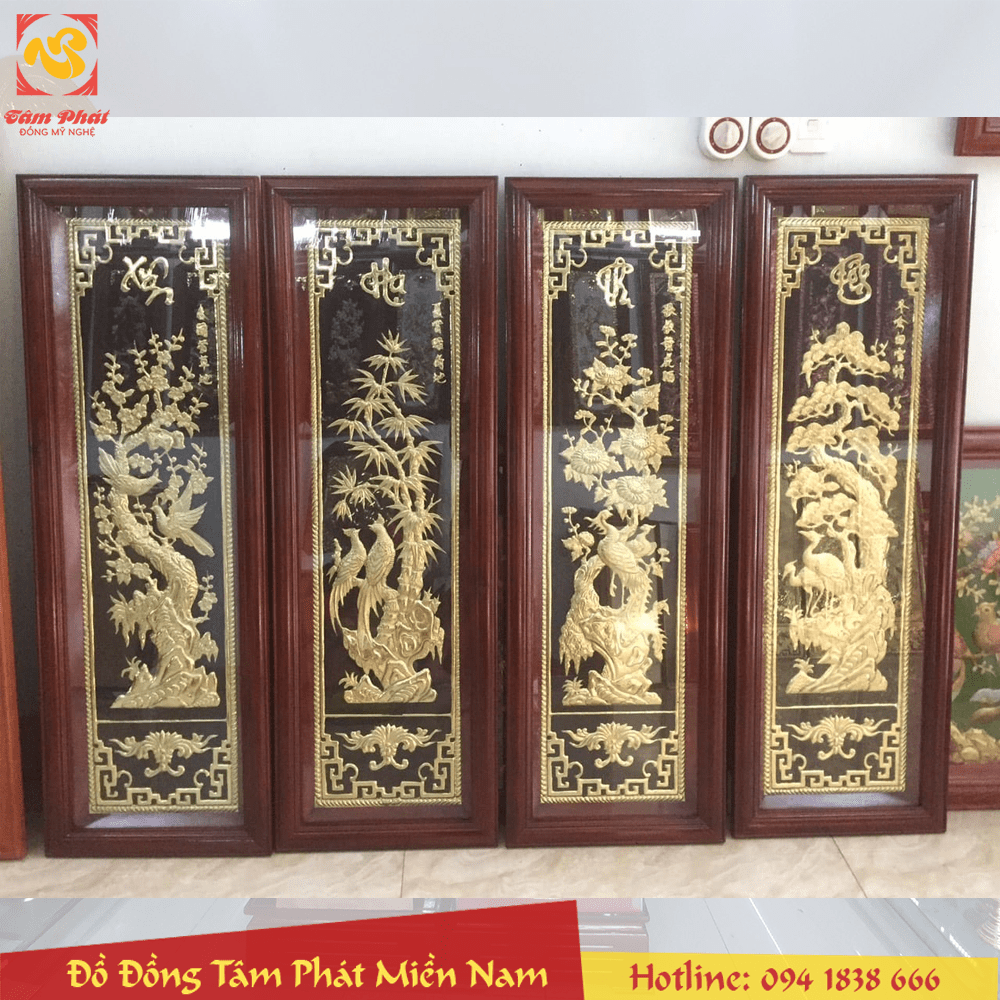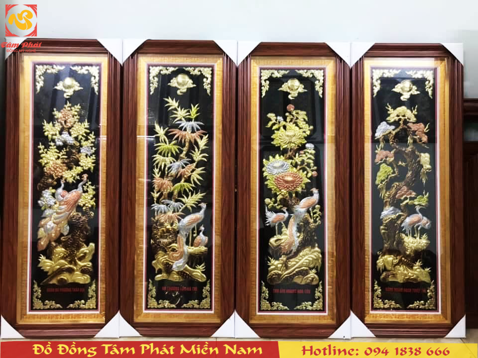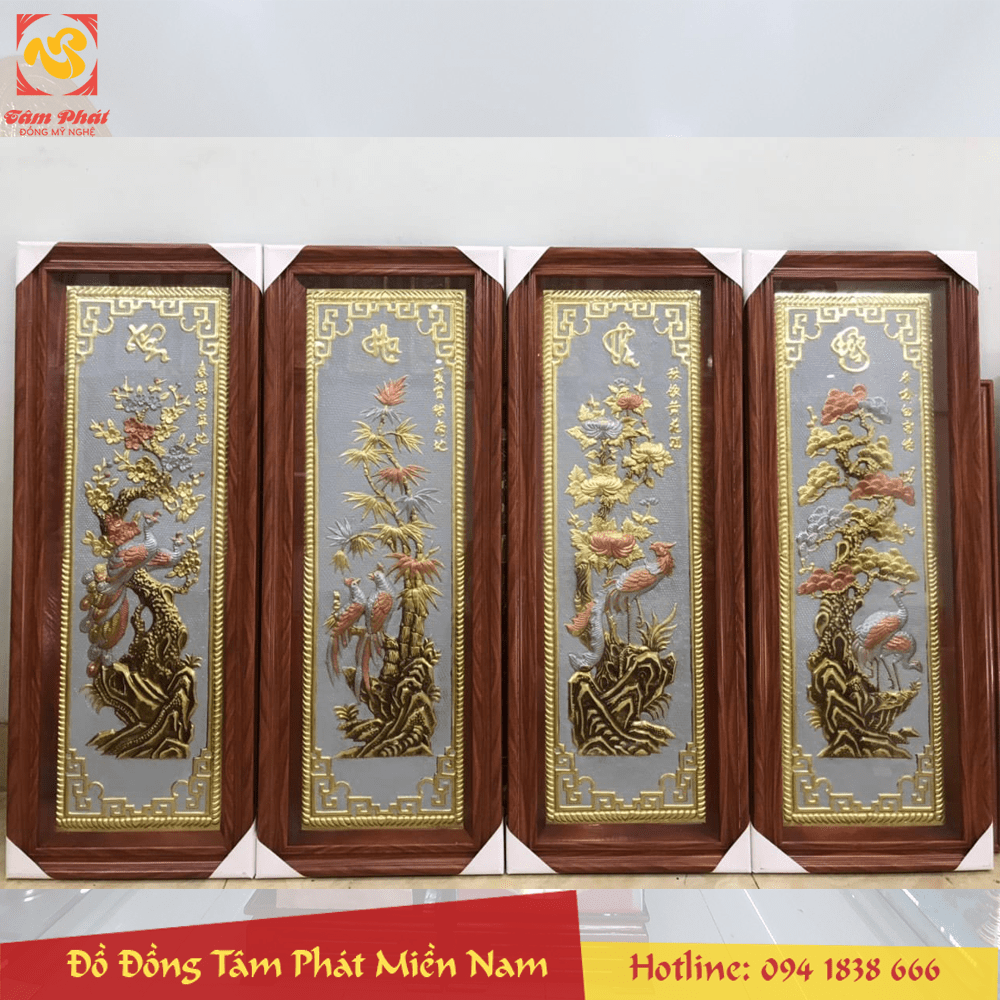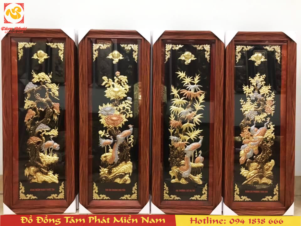 Bức tranh Tứ Quý bằng đồng đẹp tinh xảo