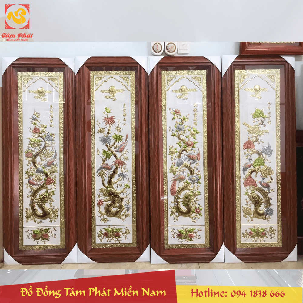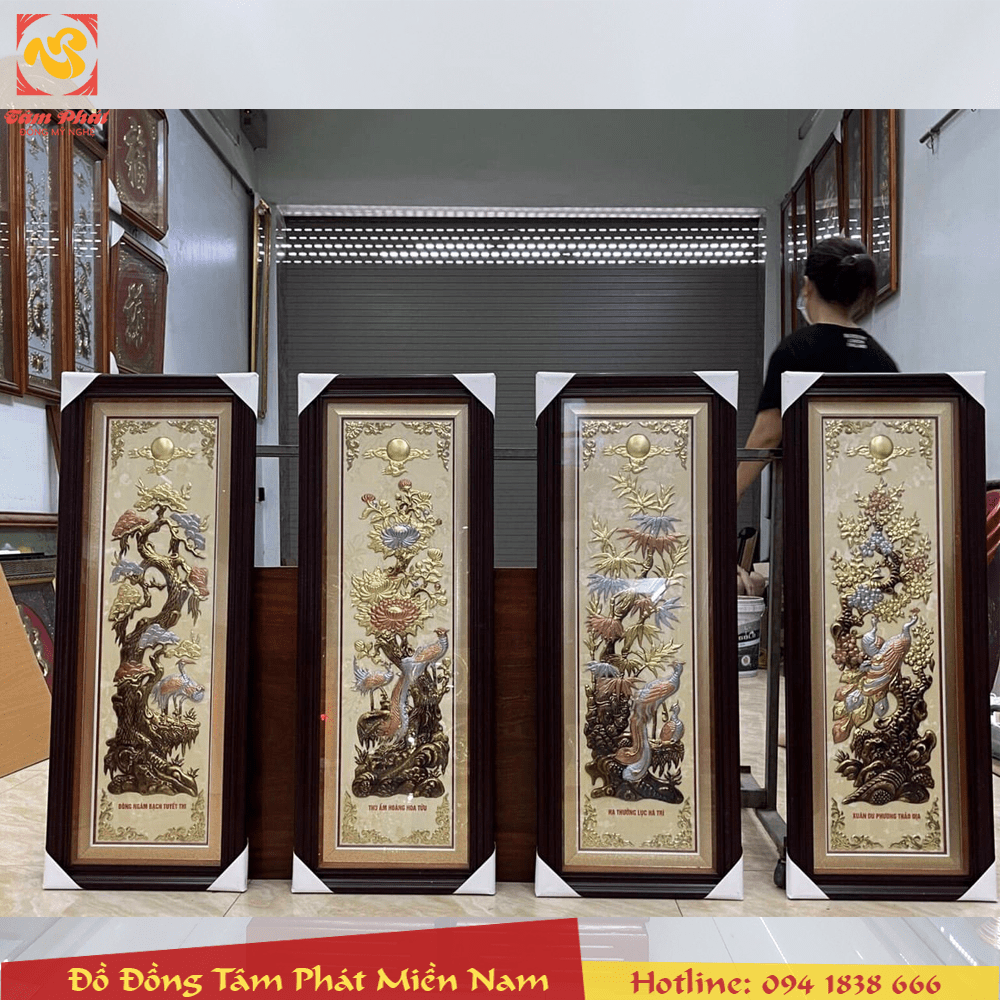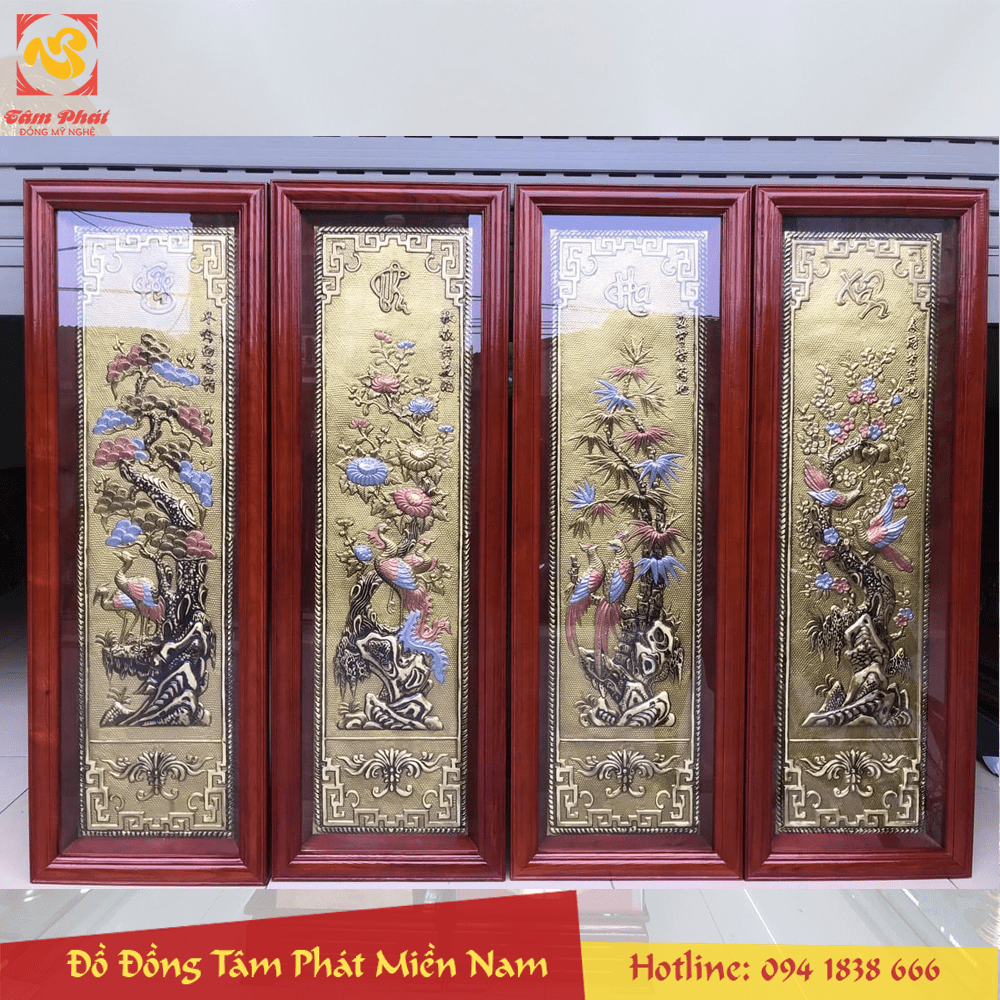 Bức tranh Tứ Quý bằng đồng đẹp tinh xảo