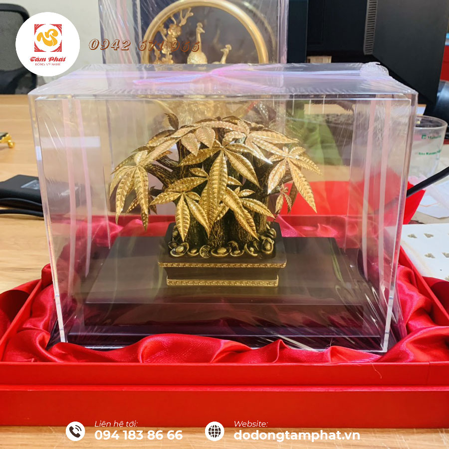 Cây kim ngân tài lộc mạ vàng 24k được xem như một vật phẩm phong thủy giúp thu hút năng lượng tích cực, mang lại bình an và thịnh vượng cho gia chủ.