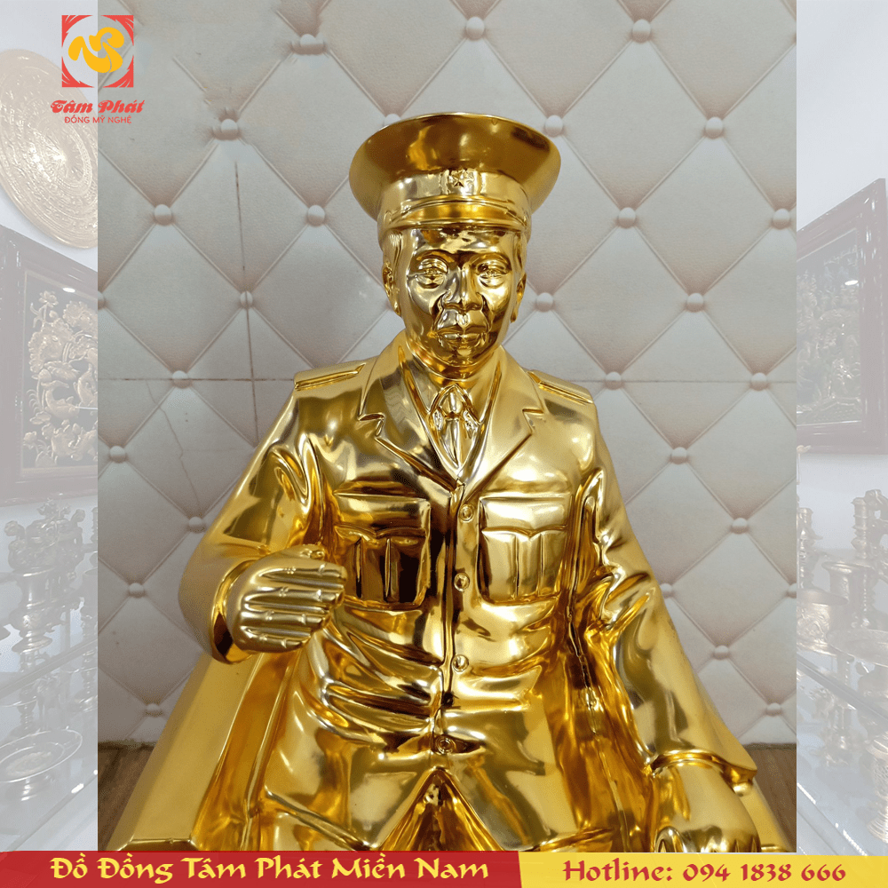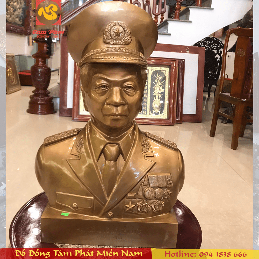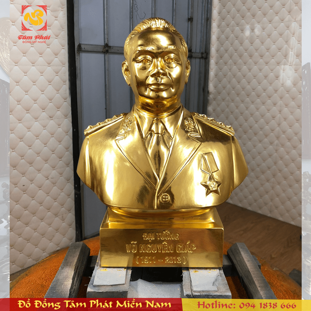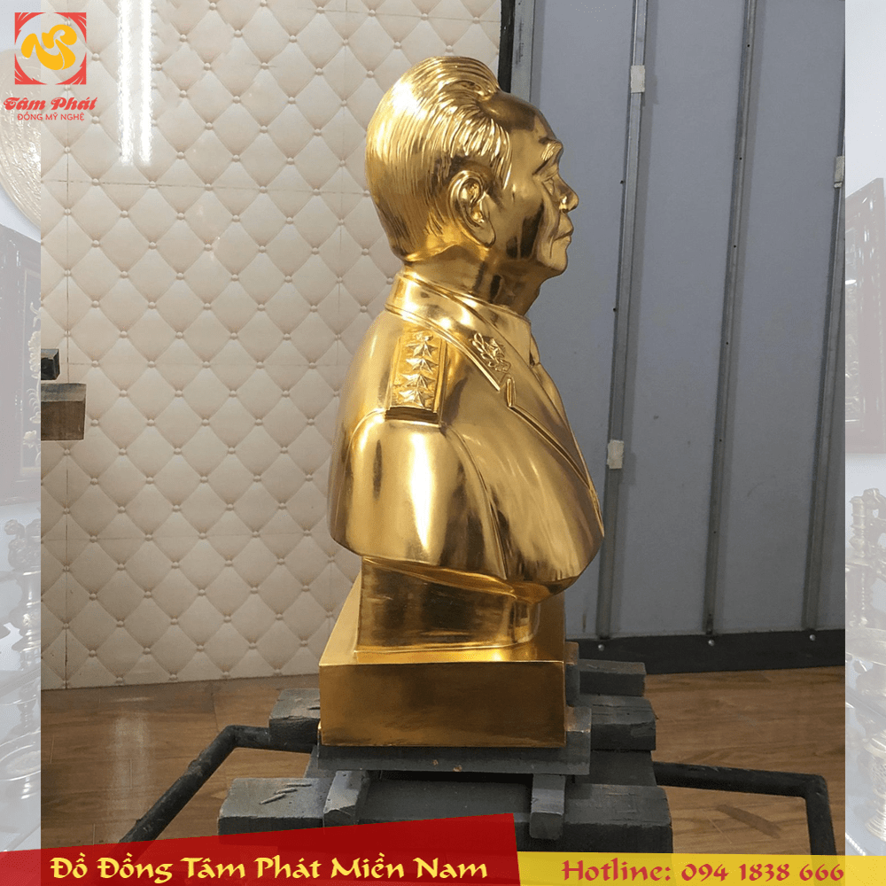 Tượng đại tướng Võ Nguyên Giáp đúc thủ công bằng đồng đỏ nguyên chất thanh khiết, không lẫn tạp chất. Tượng nặng khoảng 30kg, được chế tác theo mẫu chuẩn quốc gia do gia đình nhà Đại tướng trực tiếp kiểm duyệt.
