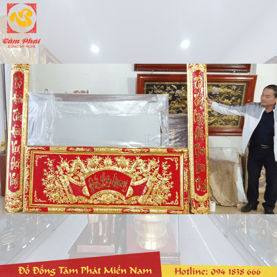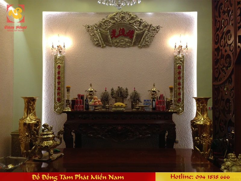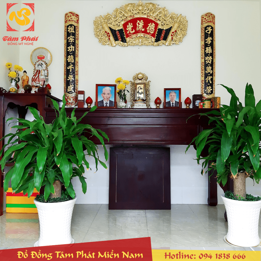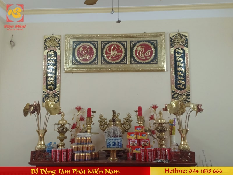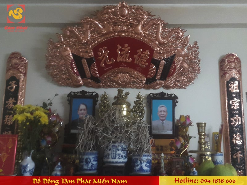 Đại tự Cuốn thư Câu đối Hoành phi tại Đồng Tâm Phát Miền Nam được làm bằng đồng thường mẫu hoa văn rất đẹp được chạm hoa văn thờ cúng theo kiểu xưa. Vì vậy sản phẩm rất được nhiều người yêu thích và chọn để trang trí bàn thờ gia tiên