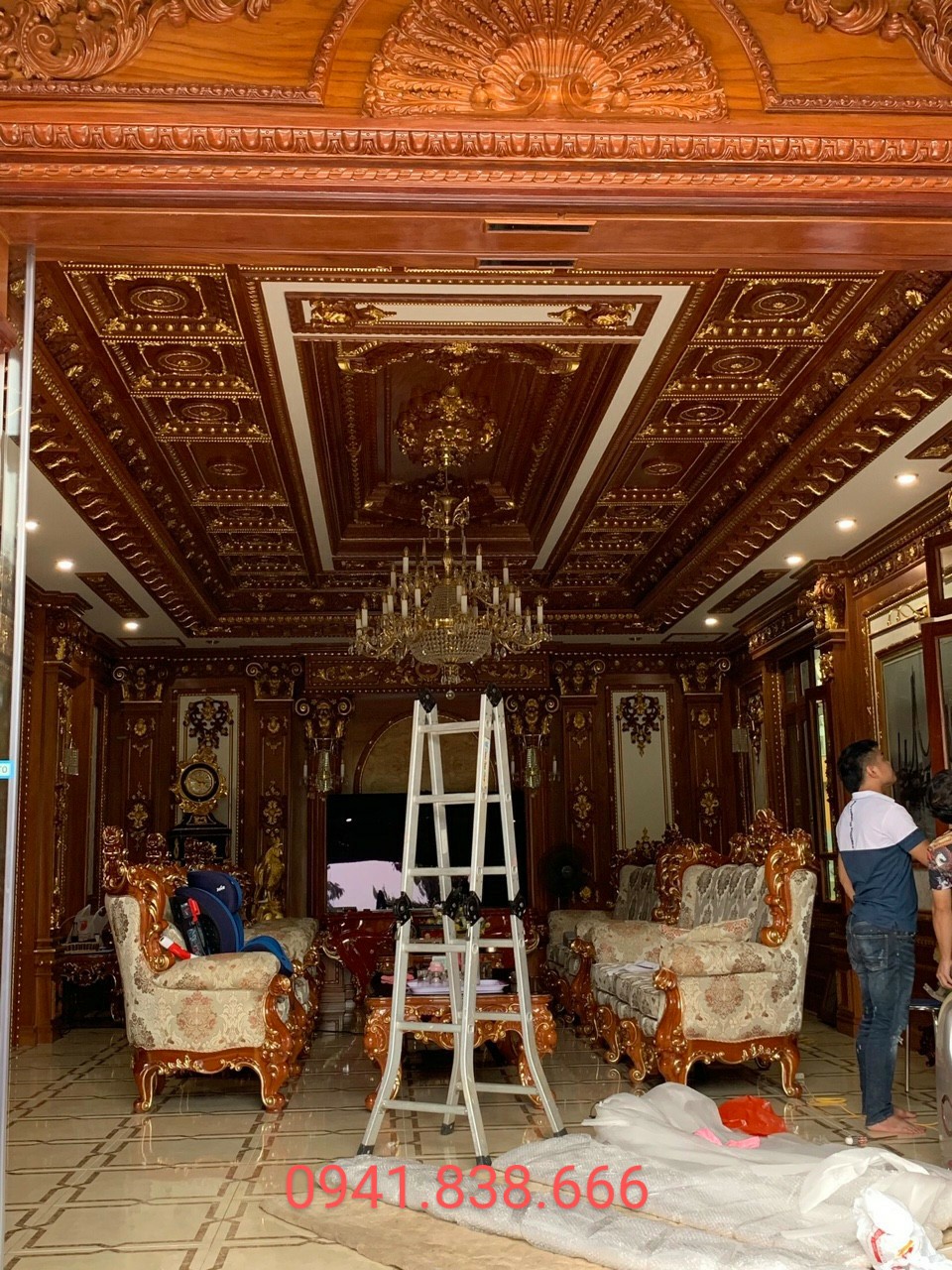 Tên sản phẩm: Dát vàng 9999 trần gỗ phòng khách nội thất tân cổ điển