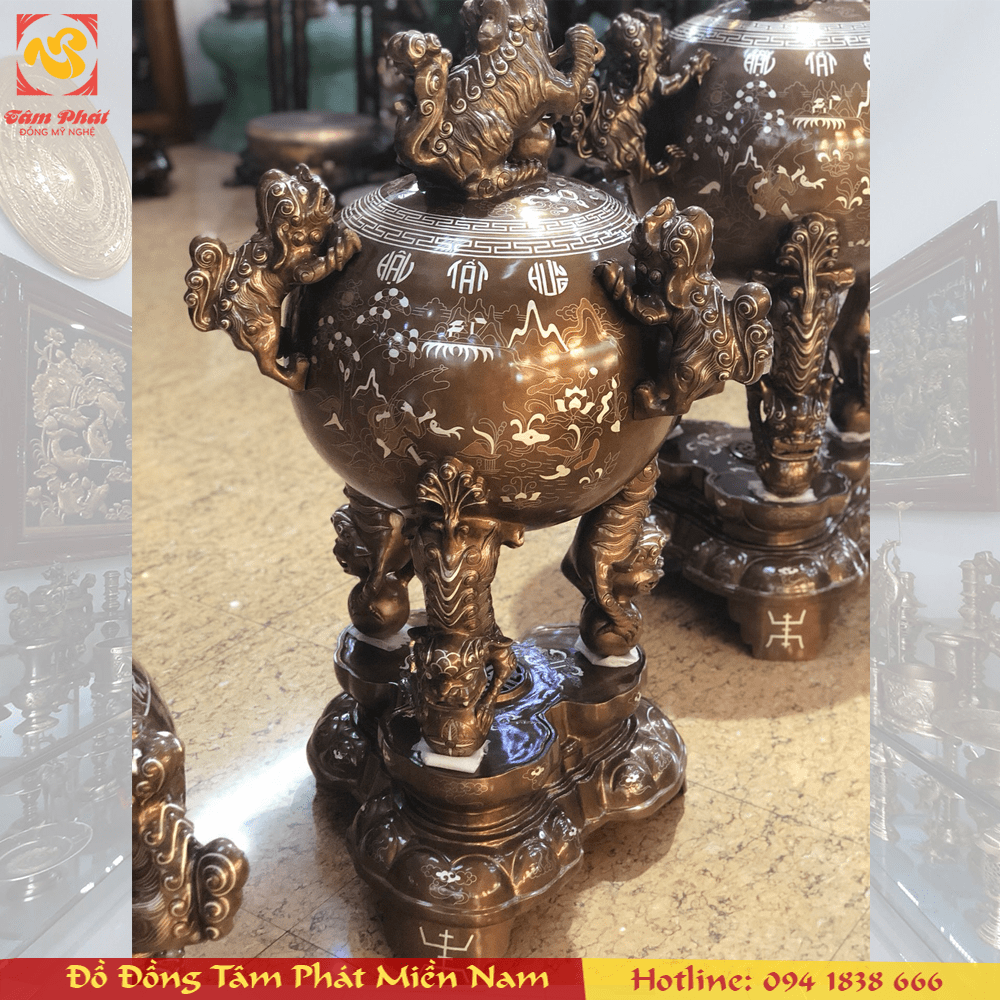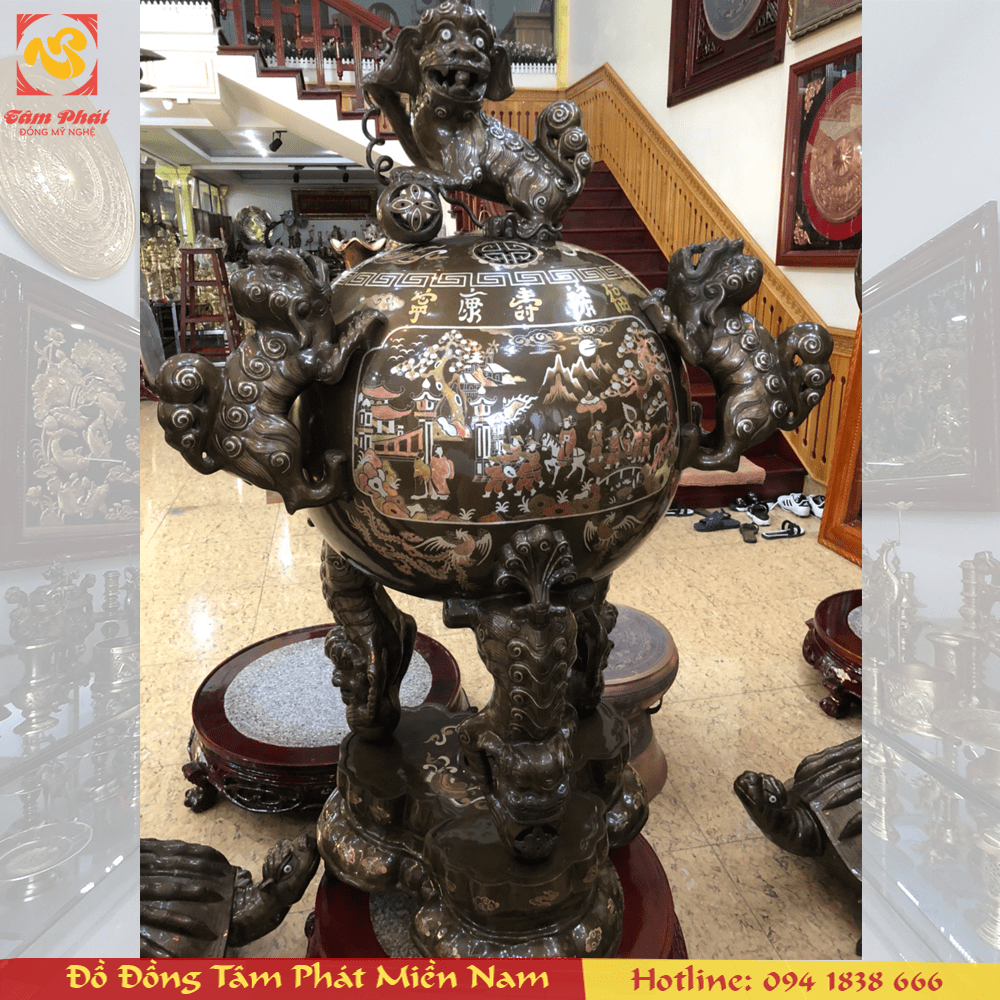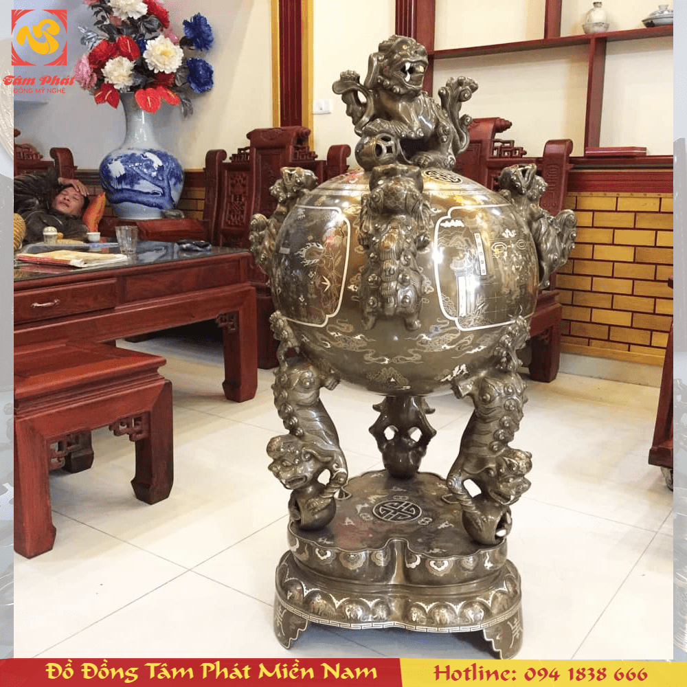 Khí chất tôn nghiêm của đỉnh thất lân vờn cầu cạo đồng phớt nỉ