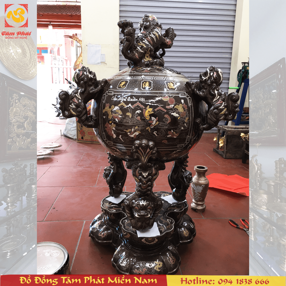 Quy cách: Đỉnh đồng thất lân được chạm khảm ngũ sắc tinh xảo, chuẩn đẹp. Quá trình chạm khảm được thực hiện bởi bàn tay nghệ nhân giỏi nhất làng nghề.