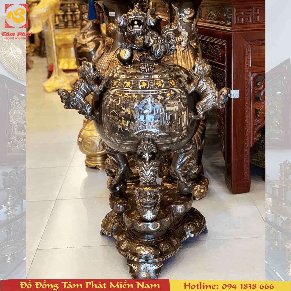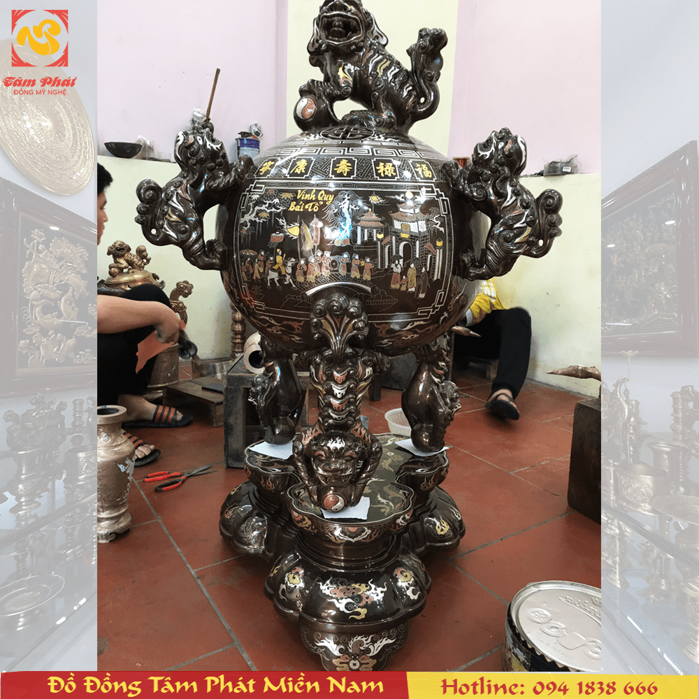 Đỉnh thất lân vờn cầu khảm ngũ sắc Vinh Quy Bái Tổ 5 chữ vàng là một sản phẩm ăn khách tại cơ sở của chúng tôi. Từ chất liệu cho đến cách thể hiện đều khẳng định đây là đỉnh đồng cao cấp. Vậy mặt hàng này có gì thu hút? Hãy cùng Tâm Phát lần lượt khám phá từng ưu điểm nhé!