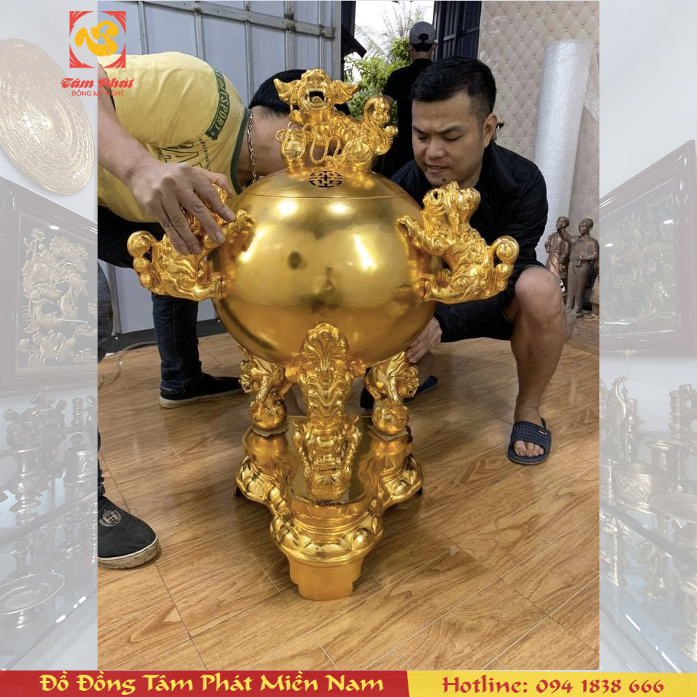 Đỉnh Thất Lân Vờn Cầu mạ vàng 24K cao cấp giao cho chú Tuấn ở Lâm Đồng! Tuyệt mỹ!