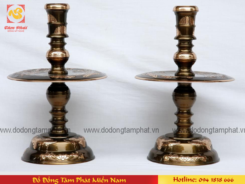 Đôi chân nến đồng đỏ cạo màu là đồ thờ cúng độc đáo, tôn nghiêm, giàu ý nghĩa rất được ưa chuộng.