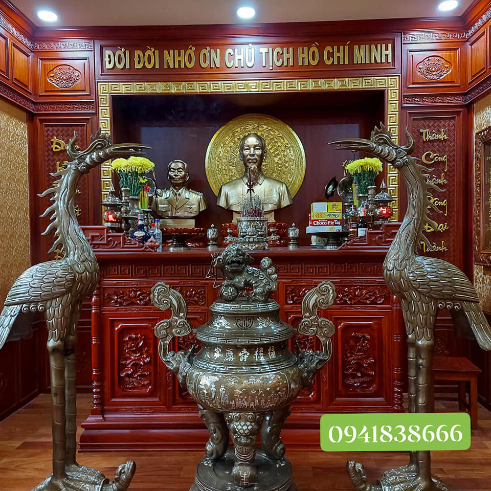 Chúng tôi nhận sắp xếp, lắp đặt và trang trí phòng thờ Bác Hồ bằng đồng đẹp mắt, chuẩn phong thủy. Trong nhiều năm qua, Tâm Phát Miền Nam đã và đang thực hiện thi công và lắp đặt bàn thờ Bác Hồ cho nhiều cơ quan chính phủ. Để được tư vấn về sản phẩm và dịch vụ, quý khách vui lòng liên hệ với chúng tôi qua Hotline: 0941 838 666 để được hỗ trợ nhanh nhất.