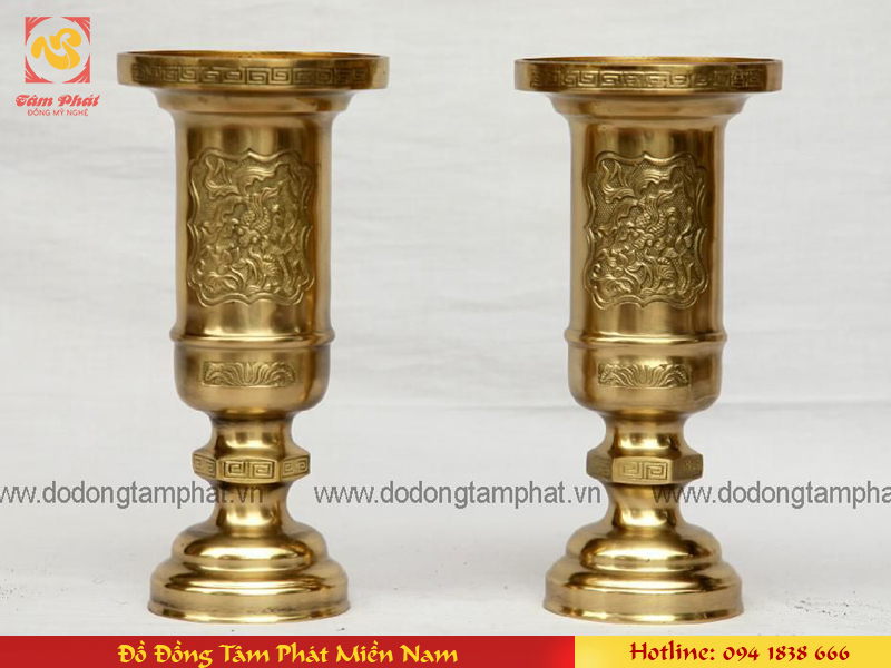 Đôi ống hương bằng đồng vàng cát tút với nhiều kích thước khác nhau, là đồ thờ cúng quan trọng thiết kế tinh xảo, giàu ý nghĩa rất được ưa chuộng. Tác phẩm được Tâm Phát chế tạo kì công từ đồng nguyên chất với hoa văn đầy tinh tế cùng những nét chạm đúc công phu, đậm đà giá trị truyền thống. Sản phẩm được sử dụng bày biện trên ban thờ gia tiên mỗi gia đình với ý nghĩa thiêng liêng sâu sắc.