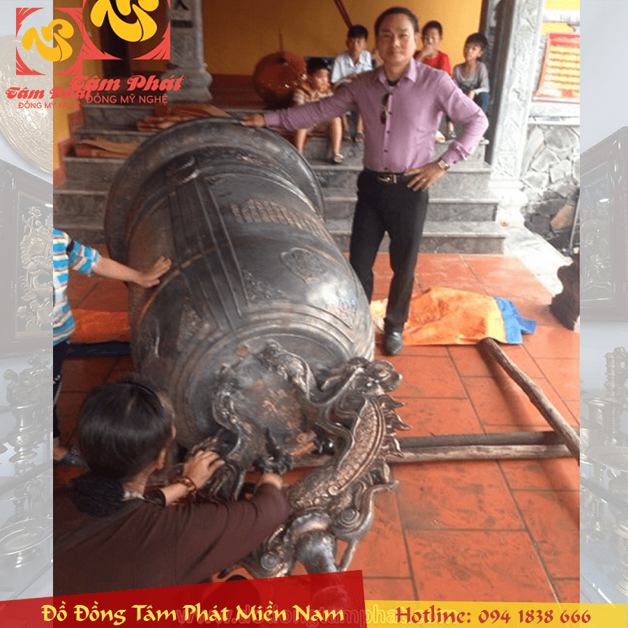 Chuông đồng Đại Hồng nặng 500kg hun đen giả cổ đúc trực tiếp tại đình Chùa