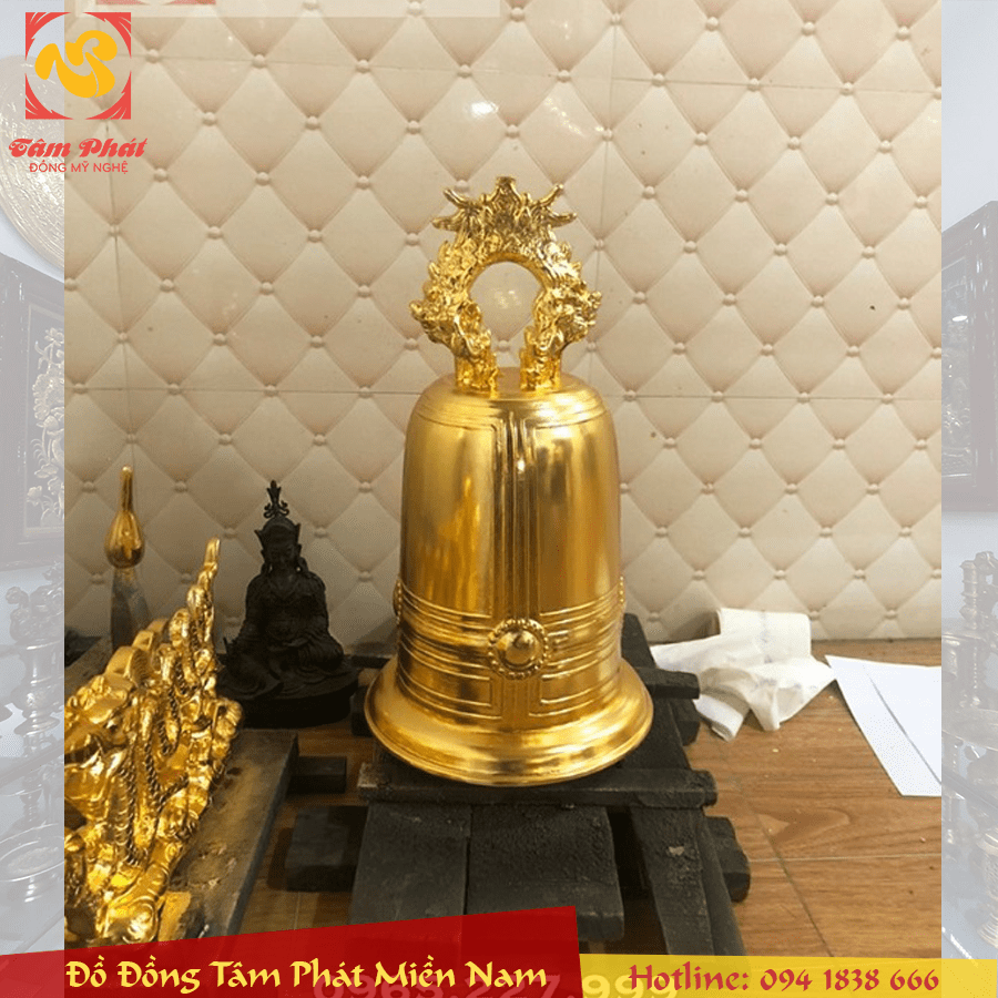 Chuông đồng thếp vàng 9999 phục vụ nhà Chùa