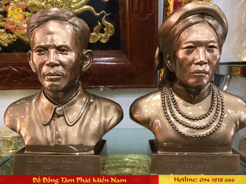 - Bức tượng đồng chân dung của người đã khuất thường được các gia chủ lựa chọn đặt tại không gian thờ cúng thay cho những bức di ảnh đã bị bạc màu thời gian, giúp không gian thờ thêm sang trọng, thêm uy nghiêm hơn và được lưu giữ lên đến hàng trăm năm.