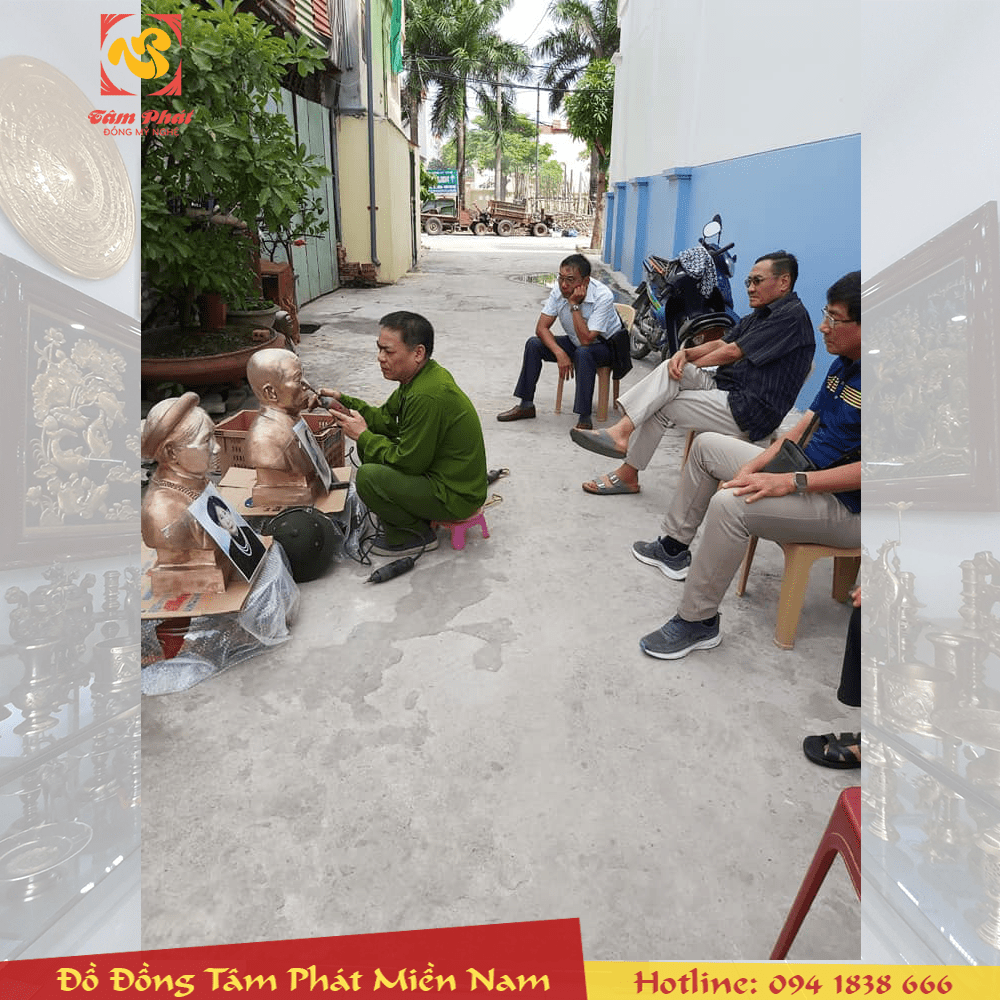 Là đơn vị đúc đồng truyền thống uy tín nhiều năm liền và mong muốn đưa thật nhiều những sản phẩm đồ đồng mỹ nghệ truyền thống đến gần hơn với mọi người và vươn tầm thế giới, đội ngũ của Tâm Phát luôn không ngừng cố gắng để chế tác những sản phẩm không chỉ chất lượng tốt mà mẫu mã đặc biệt tinh xảo đến với quý khách hàng. Khách hàng muốn đặt làm tượng đồng truyền thần chân dung của chúng tôi có thể qua trực tiếp các cơ sở của Đồ Đồng Tâm Phát hoặc đặt hàng online bằng cách liên hệ đến số Hotline dưới đây.