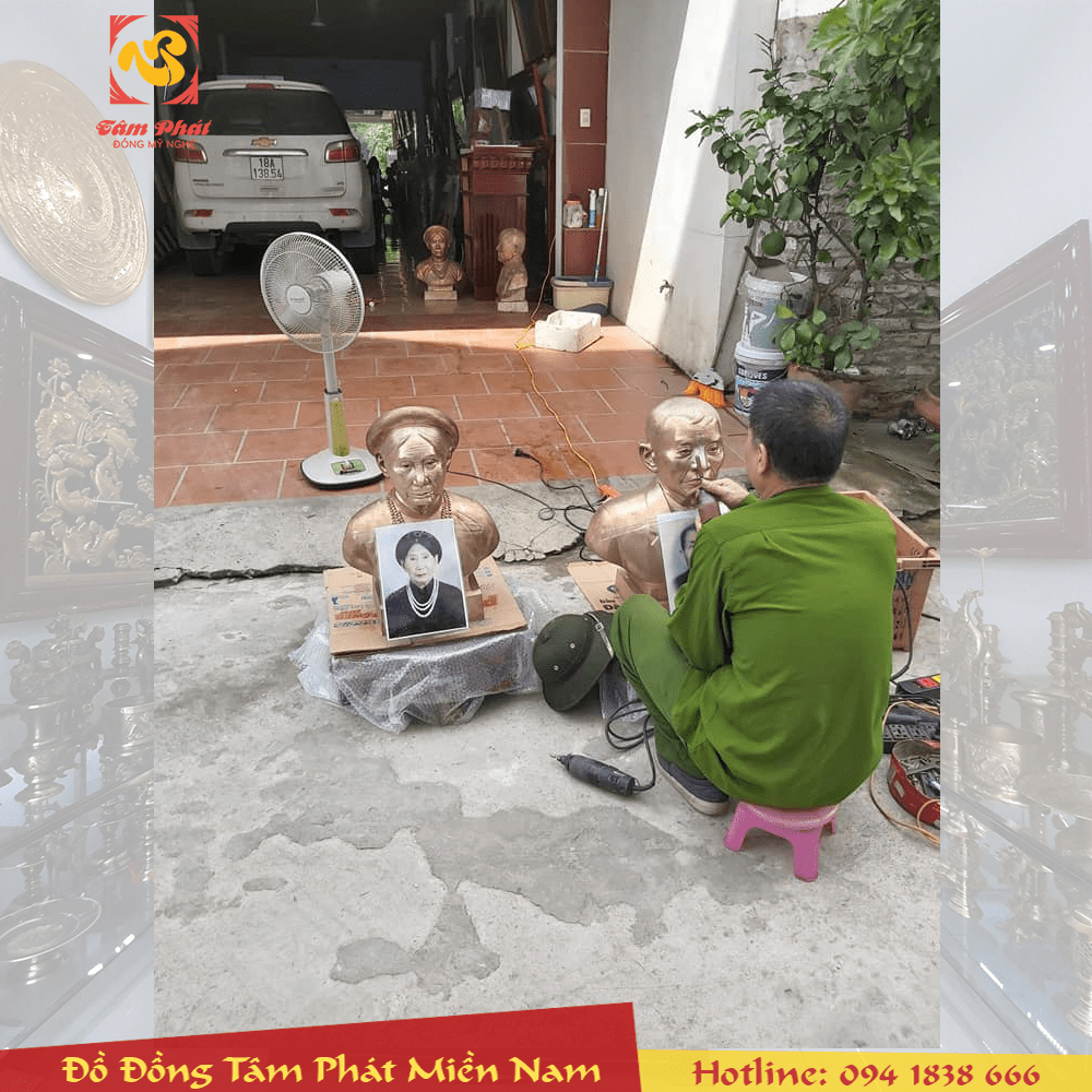 Đúc tượng đồng chân dung cụ ông cụ bà từ hình ảnh ban đầu, chất liệu đồng đỏ tinh khiết, tạo hình chuẩn xác từ các nghệ nhân điêu khắc tài hoa của đúc đồng Tâm Phát, mời quý vị cùng tham khảo.
