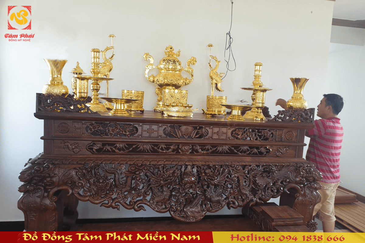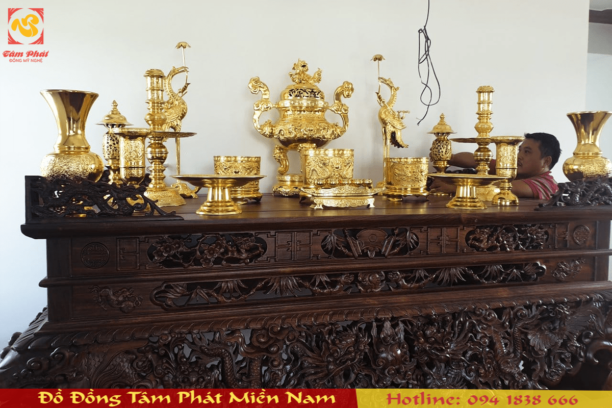 Giao cho anh Thắng ở Vũng Tàu bộ đồ thờ mạ vàng 24K sắc nét