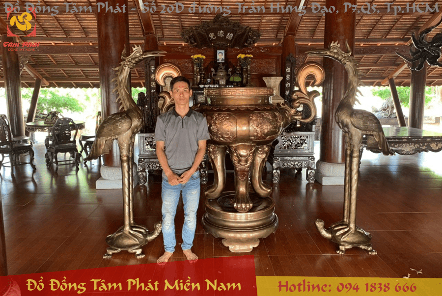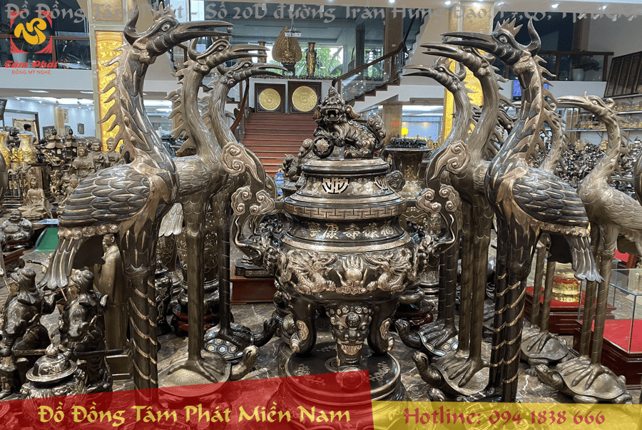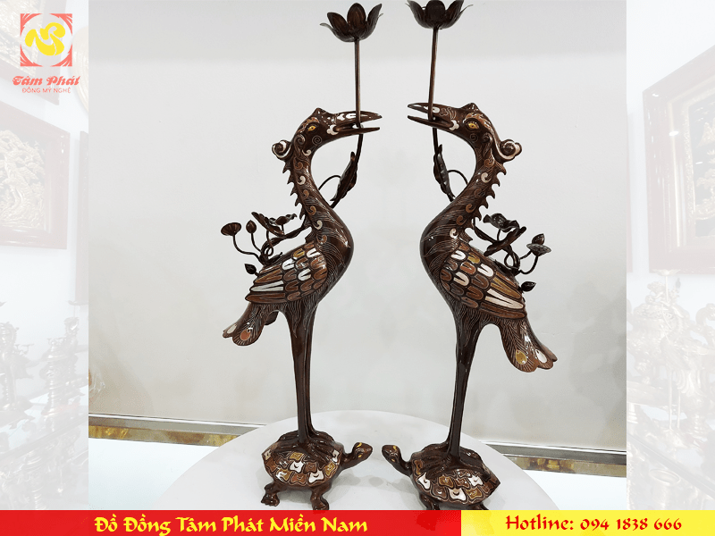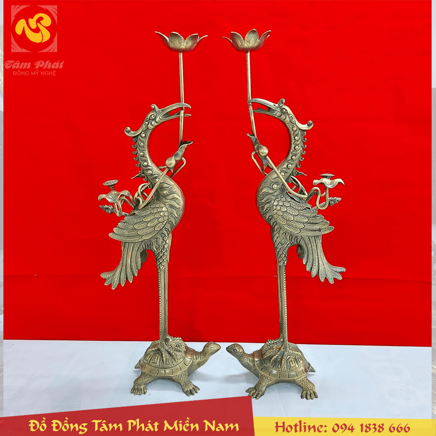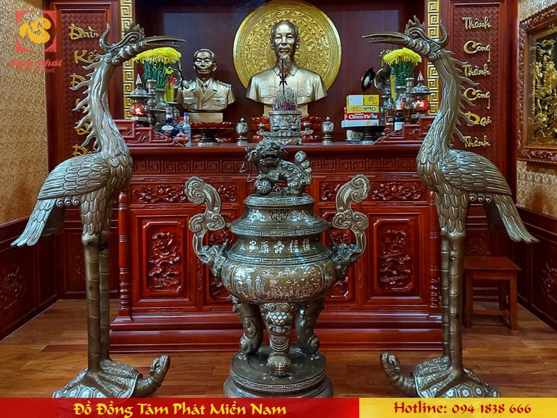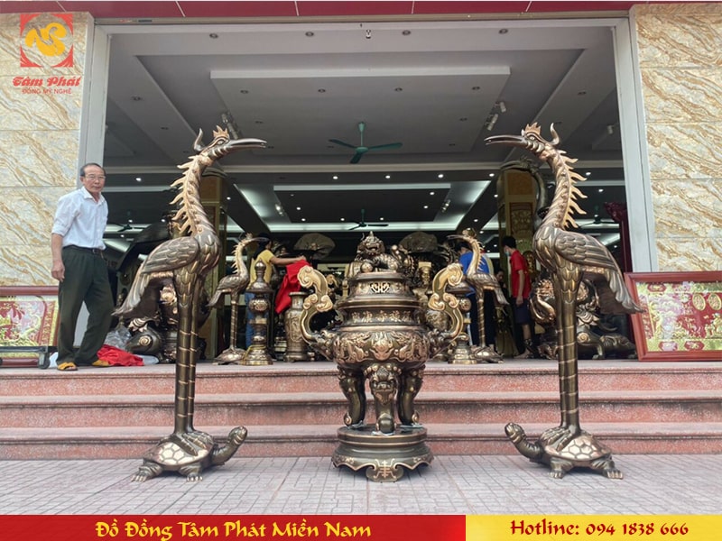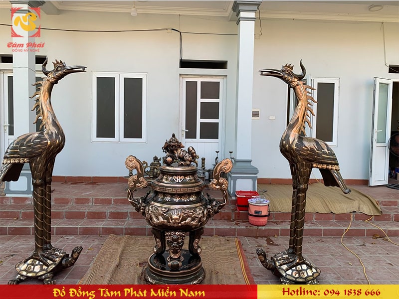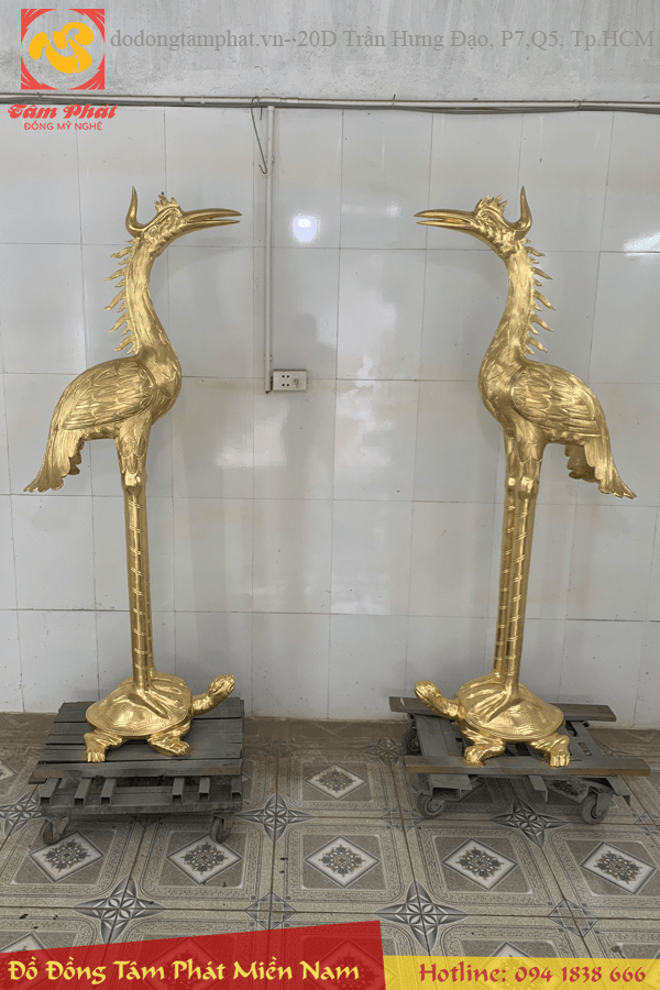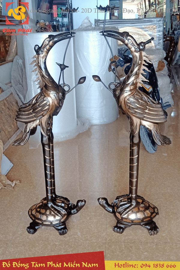 Đôi hạc thờ bằng đồng cát tút