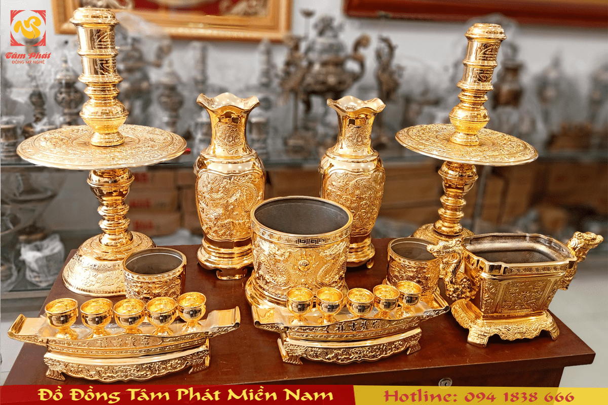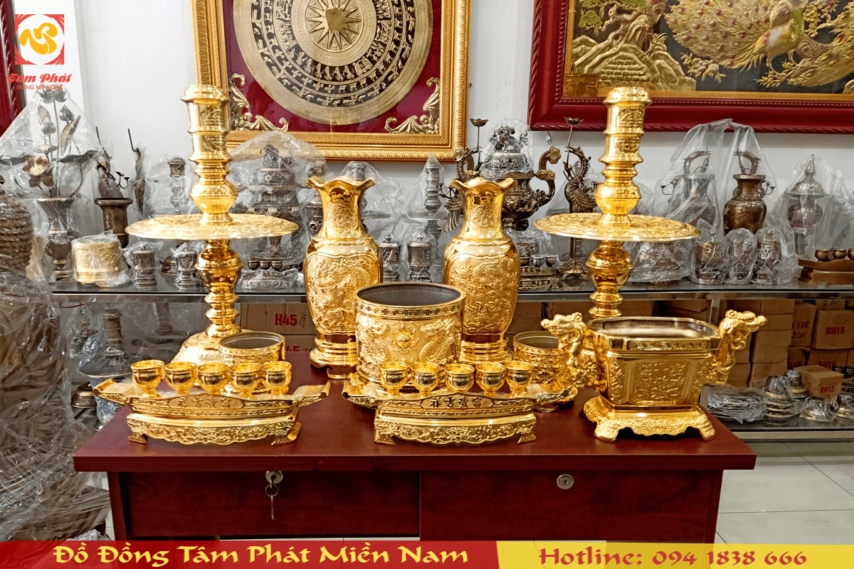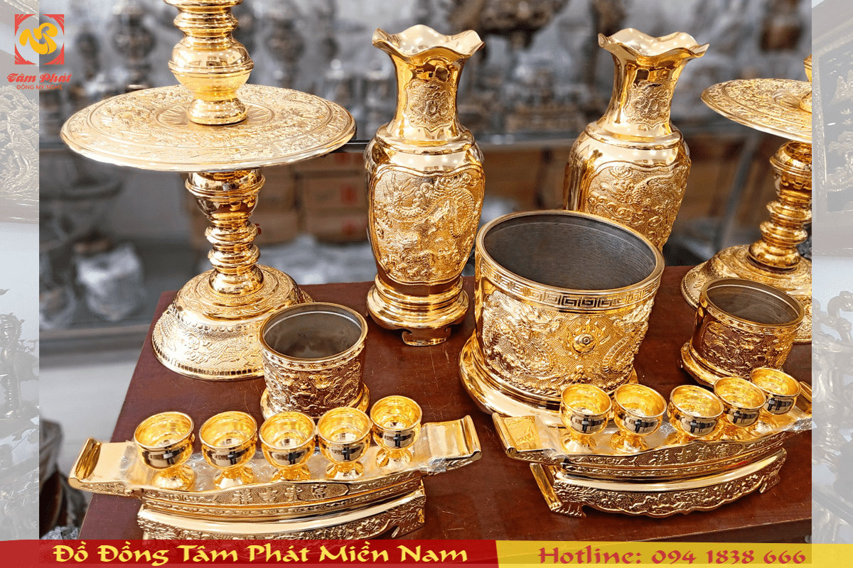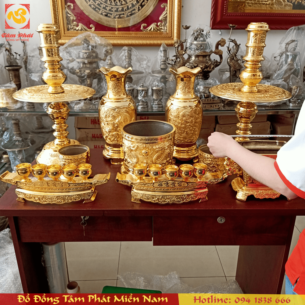 Hoan hỉ - Hoàn thiện và bàn giao thành công bộ đồ thờ đồng mạ vàng 24K cho anh Thiện ở Vũng Tàu