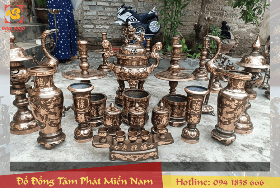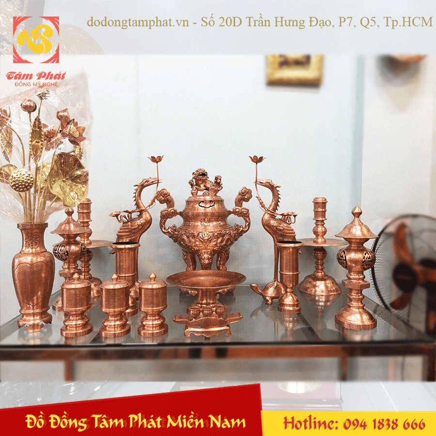 Bộ đỉnh thờ bằng đồng đỏ phớt nỉ