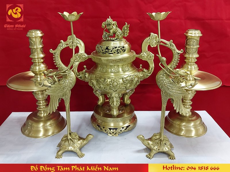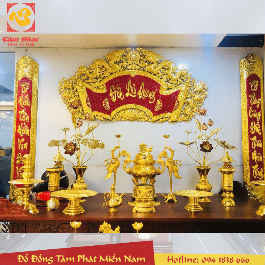 Bộ đỉnh thờ bằng đồng vàng mộc