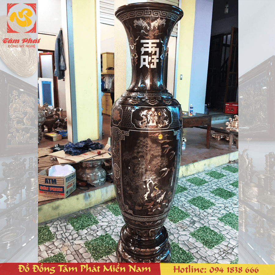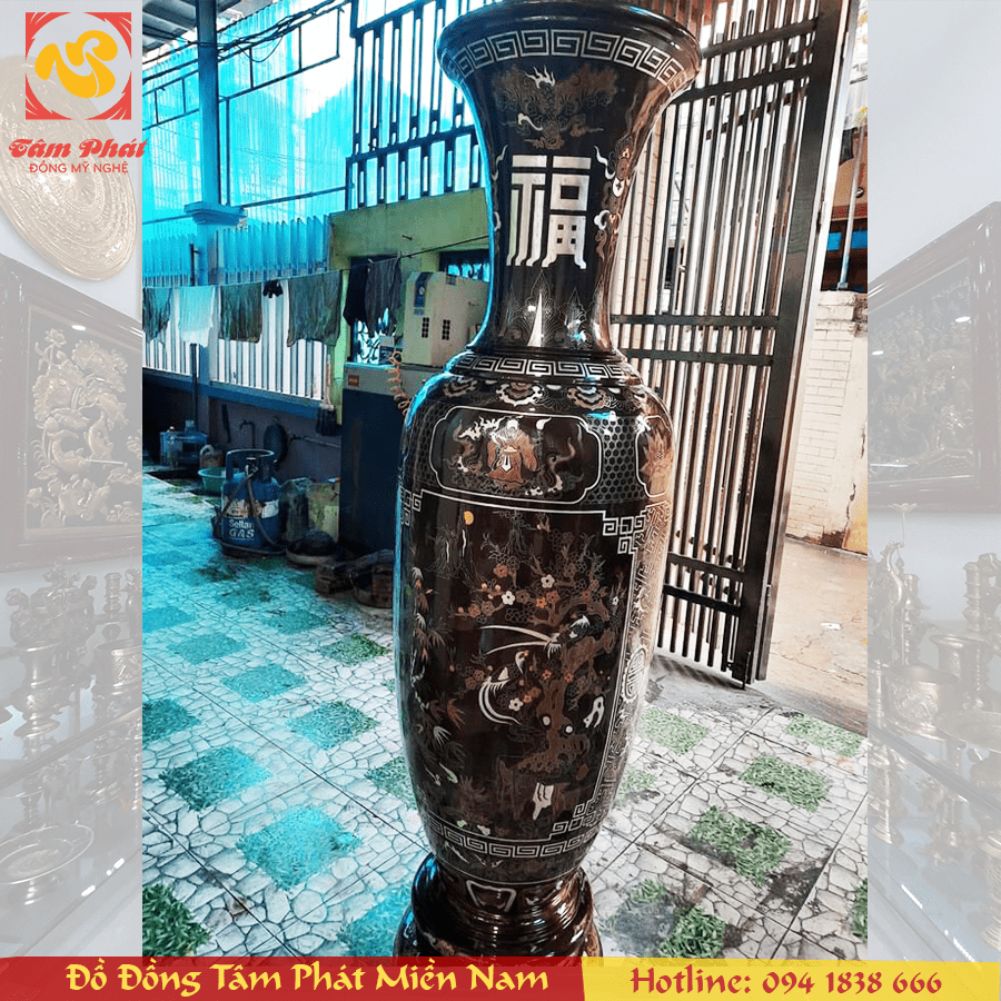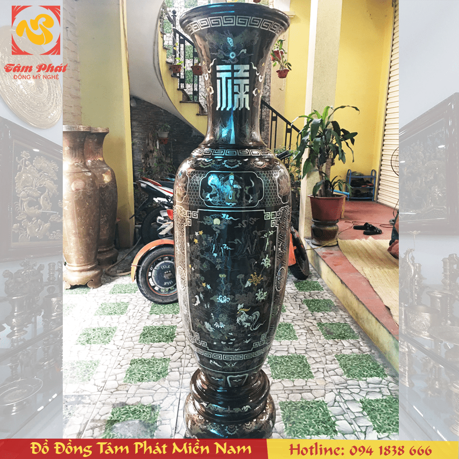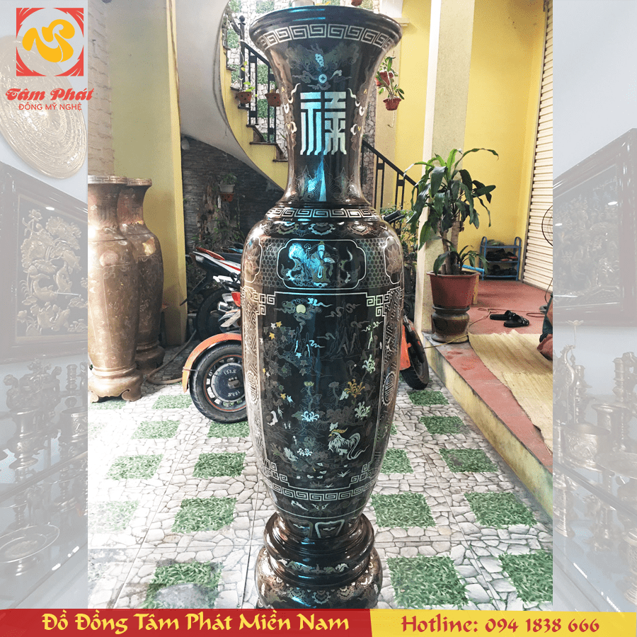 Từ xưa, người ta đã sử dụng lọ lộc bình bằng đồng như một vật phẩm phong thủy, thu hút nguồn năng lượng tốt. Đến nay, sản phẩm vẫn khẳng định được vị thế của mình đối với đời sống văn hóa tinh thần của người Việt. Dưới đây là cặp bình có chiều cao 1m2, kiểu dáng vô cùng đẹp mắt và ấn tượng. Sản phẩm được các nghệ nhân Tâm Phát chế tác thủ công, bàn giao tại công trình.