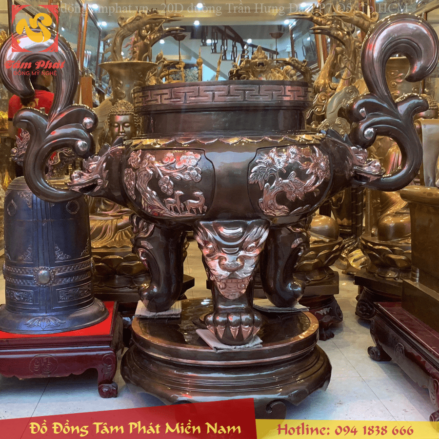 + Ý nghĩa lư hương bằng đồng còn được thể hiện ở những nét hoa văn tinh tế và tỷ mỉ. Chúng ta có thể bắt gặp các loại hình dáng như: Bảo đảnh, Phương đẩu, Sư tử, Chim hạc, Liên hoa…. Chính là biểu trưng cho những thứ quyền lực, sang trọng nhưng cũng luôn hàm chứa những diệu ý, chân lý và văn hóa của Đạo Phật.