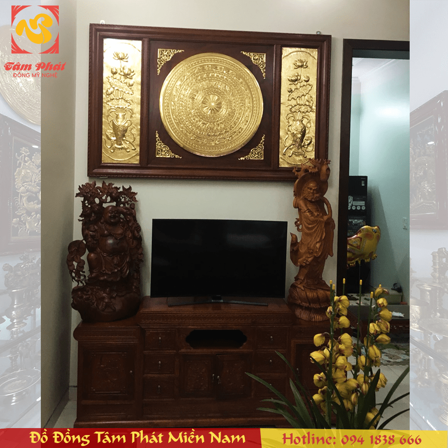 Trước hết, sản phẩm được dùng để tô điểm không gian nội thất. Các bạn có thể kết hợp với khung gỗ hoặc ốp lên tường làm phù điêu. Ngoài ra, sản phẩm có thể đặt trên giá đỡ để làm biểu trưng. Hãy ưu tiên những khu vực trang trọng cho mặt trống đồng. Cụ thể là phòng khách, phòng làm việc hoặc gian thờ gia tiên!