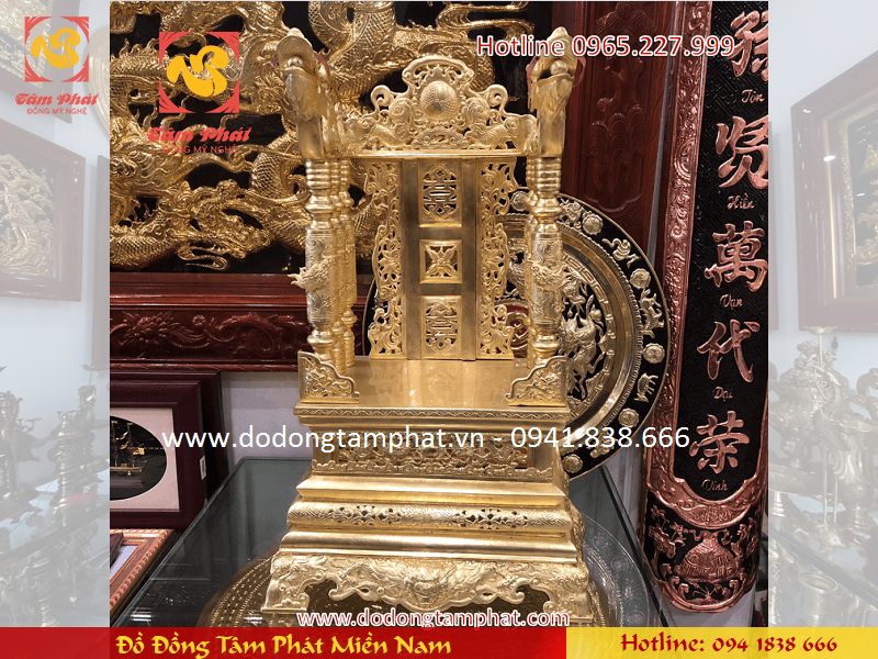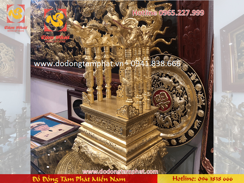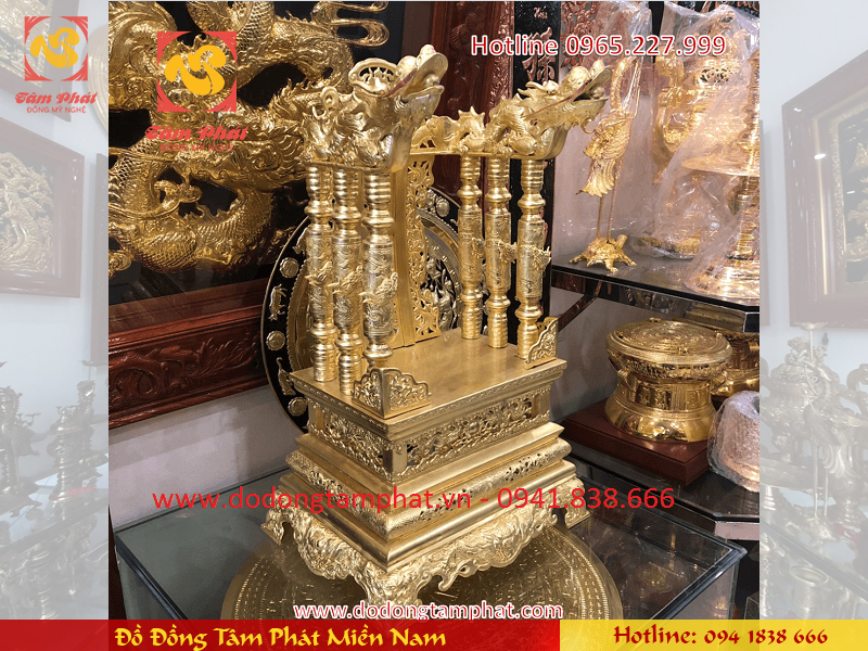 Mẫu ngai thờ cổ bằng đồng mạ vàng tinh xảo