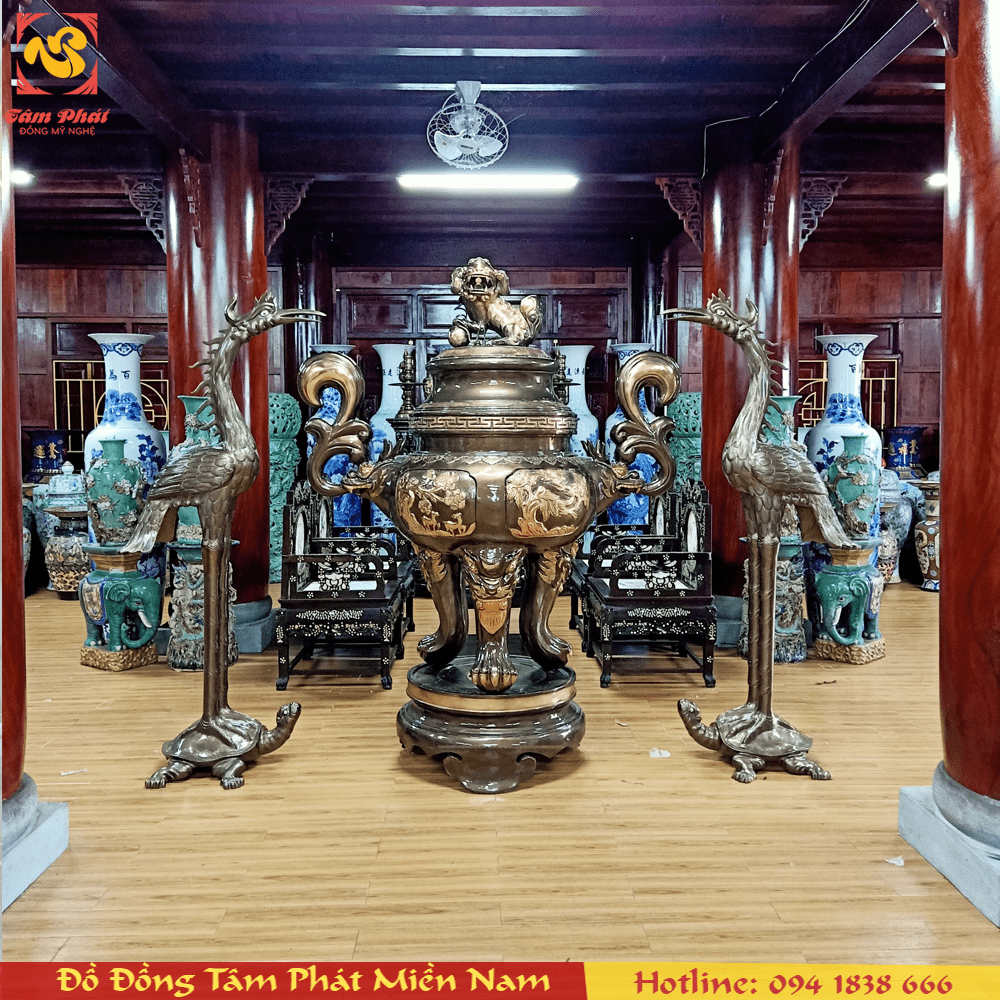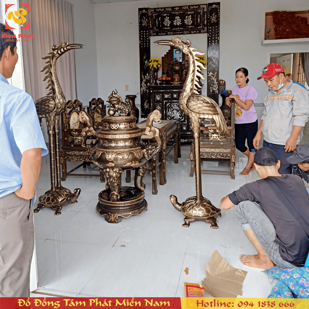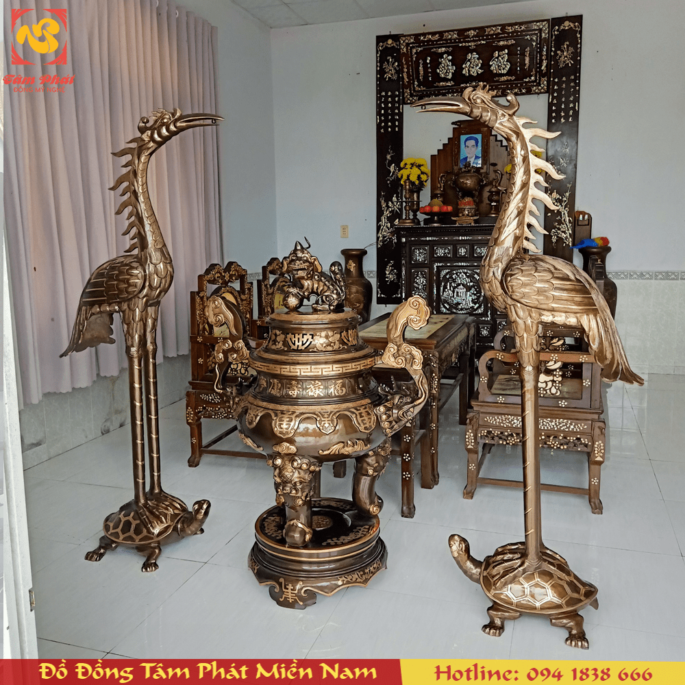 + 2 Đôi hạc cao 1,97m đồng đỏ và đôi hạc 1,76m phớt nỉ.