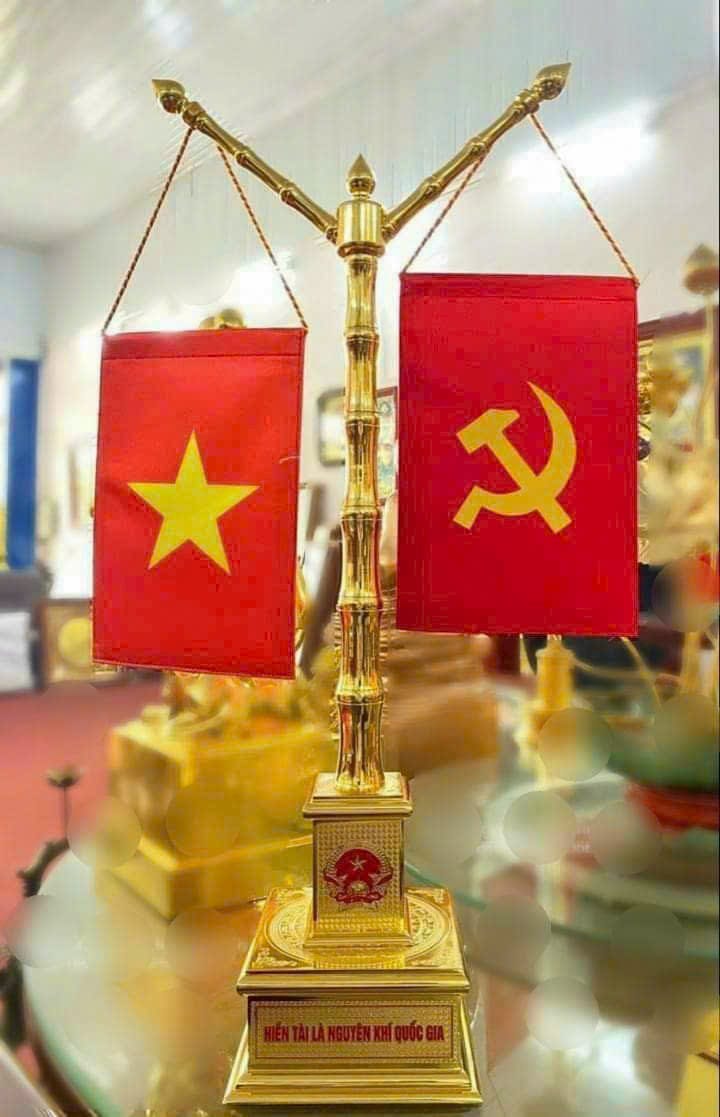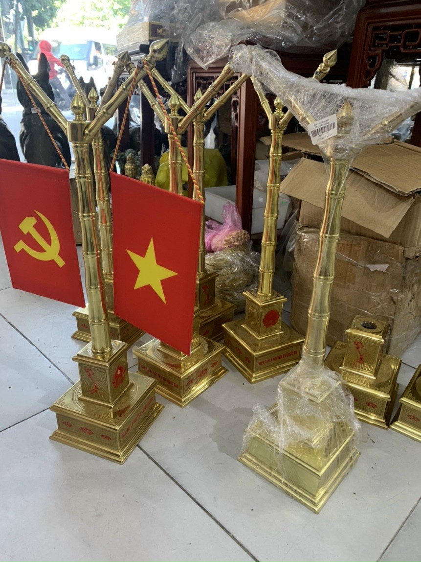 Cột cờ cao 42cm này do nghệ nhân Tâm Phát chế tác bằng nguyên liệu đồng cát tút hay còn gọi là đồng vỏ đạn, loại đồng có chất lượng tốt nhất tạo nên sản phẩm quà tặng để bàn làm việc với bề mặt sản phẩm được phủ bóng bền đẹp, mạ vàng 24k sắc nét sang trọng.