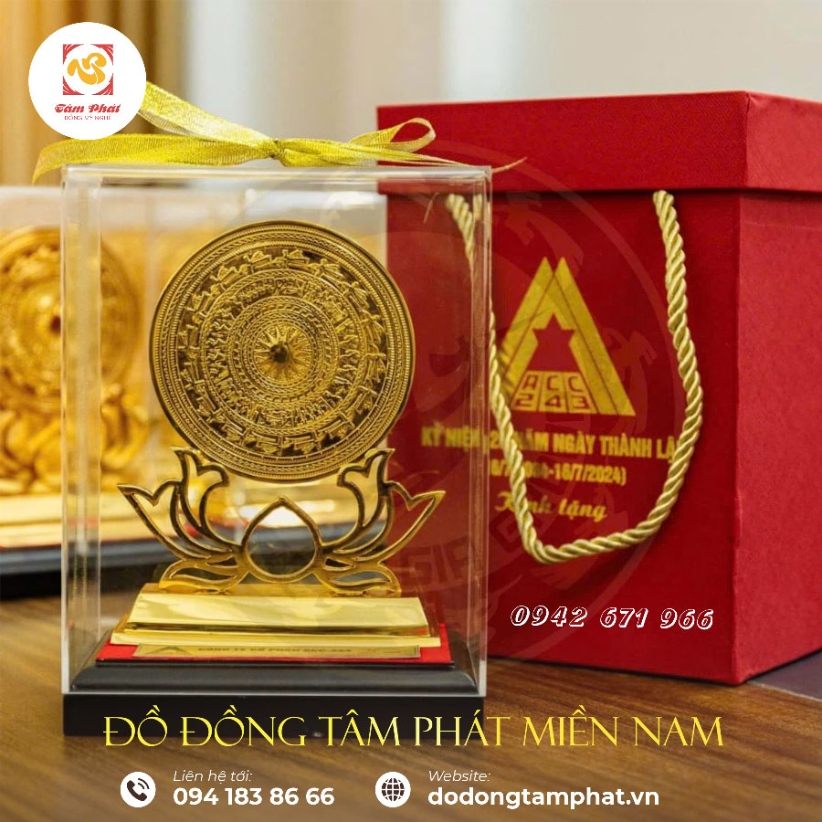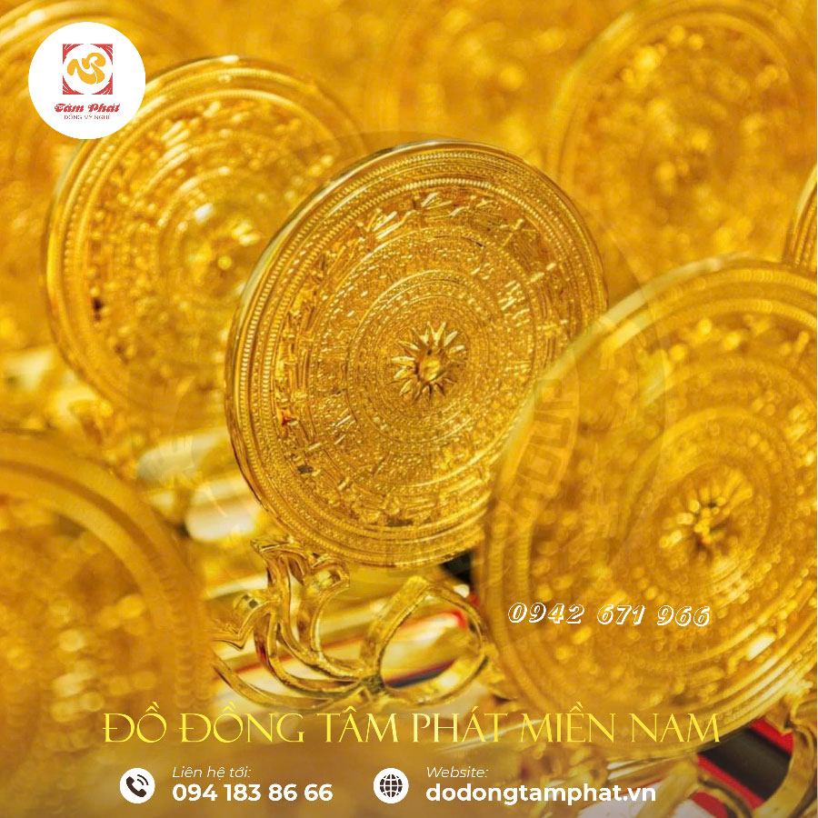Tác phẩm được Tâm Phát chế tạo kì công từ đồng nguyên chất với hoa văn đầy tinh tế. Biểu trưng mặt trống đồng Đông Sơn được ưa chuộng vừa là vật trưng bày trong phòng làm việc, phòng khách vừa mang ý nghĩa phong thủy sâu sắc.