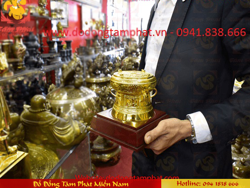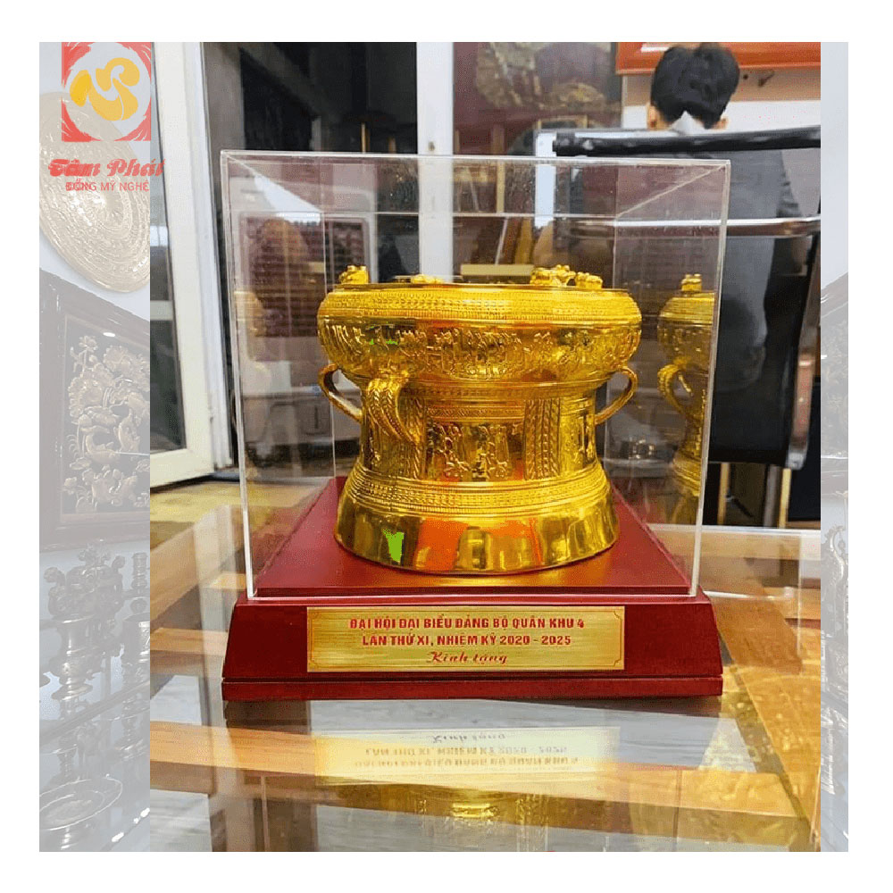 Không những thế, sản phẩm còn đại diện cho quyền lực, địa vị xã hội. Bạn có thể dùng trống lưu niệm để tặng cấp trên. Dịch vụ dát vàng 9999 giúp sản phẩm có vẻ đẹp trường tồn!