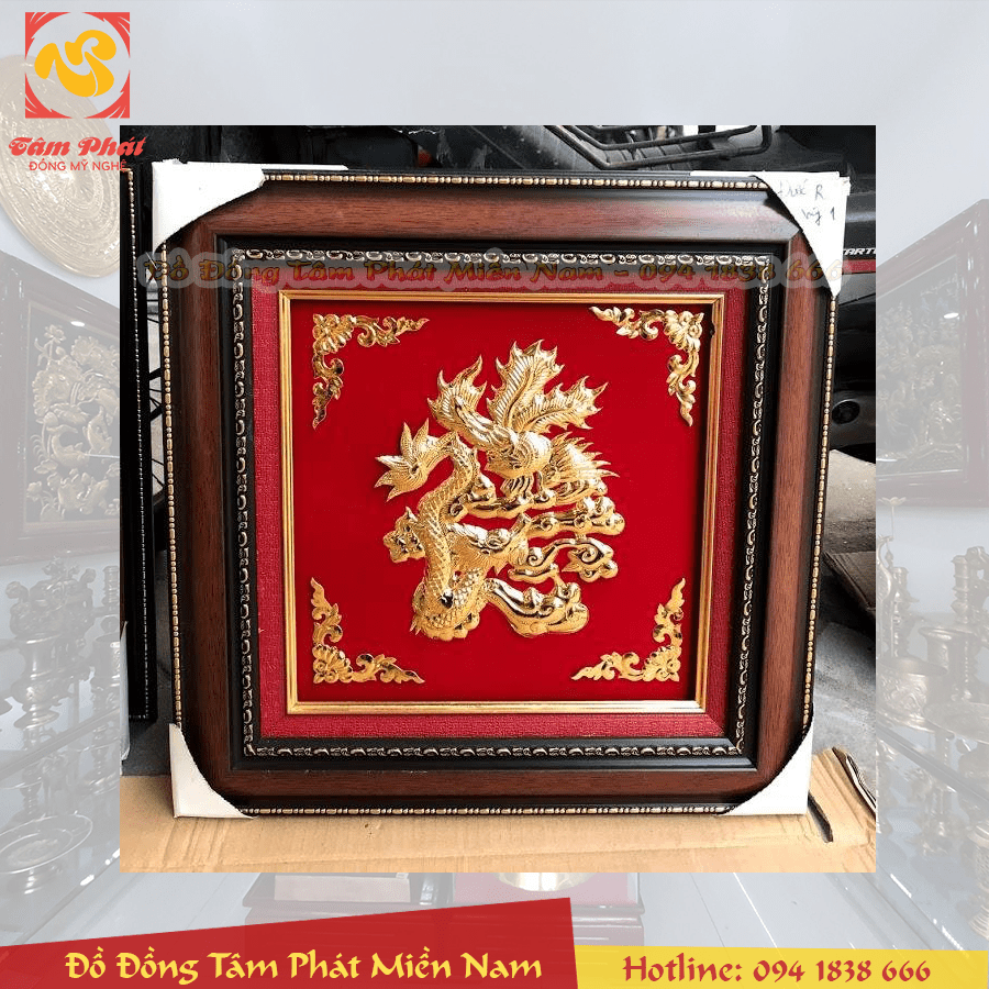Tranh chữ bằng đồng hóa Rồng mạ vàng khung gỗ là bức tranh chữ cao cấp, đẹp sắc nét, giàu ý nghĩa nhân văn sâu sắc. Tác phẩm này được Tâm Phát sản xuất công phu từ đồng nhập khẩu cao cấp, có tạo hình đẹp với màu sắc tinh xảo. Bức tranh rất được ưa chuộng dùng làm vật trang trí nội thất phong thủy và quà biếu tặng vô cùng ý nghĩa.