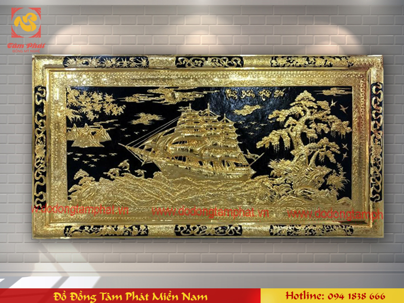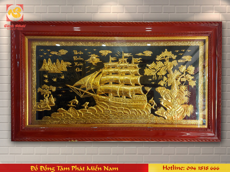 Tranh Thuận buồm xuôi gió khung đồng mạ vàng 24K nền đen với nhiều kích thước khác nhau là bức tranh nội thất phong thủy đẹp, giàu ý nghĩa thường được sử dụng treo trưng bày trong phòng khách, phòng làm việc với ý nghĩa sâu sắc.