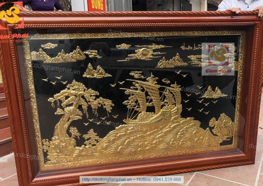Tên sản phẩm: Tranh đồng Thuận Buồm Xuôi Gió mạ vàng 24k kích thước 1mx0,6m