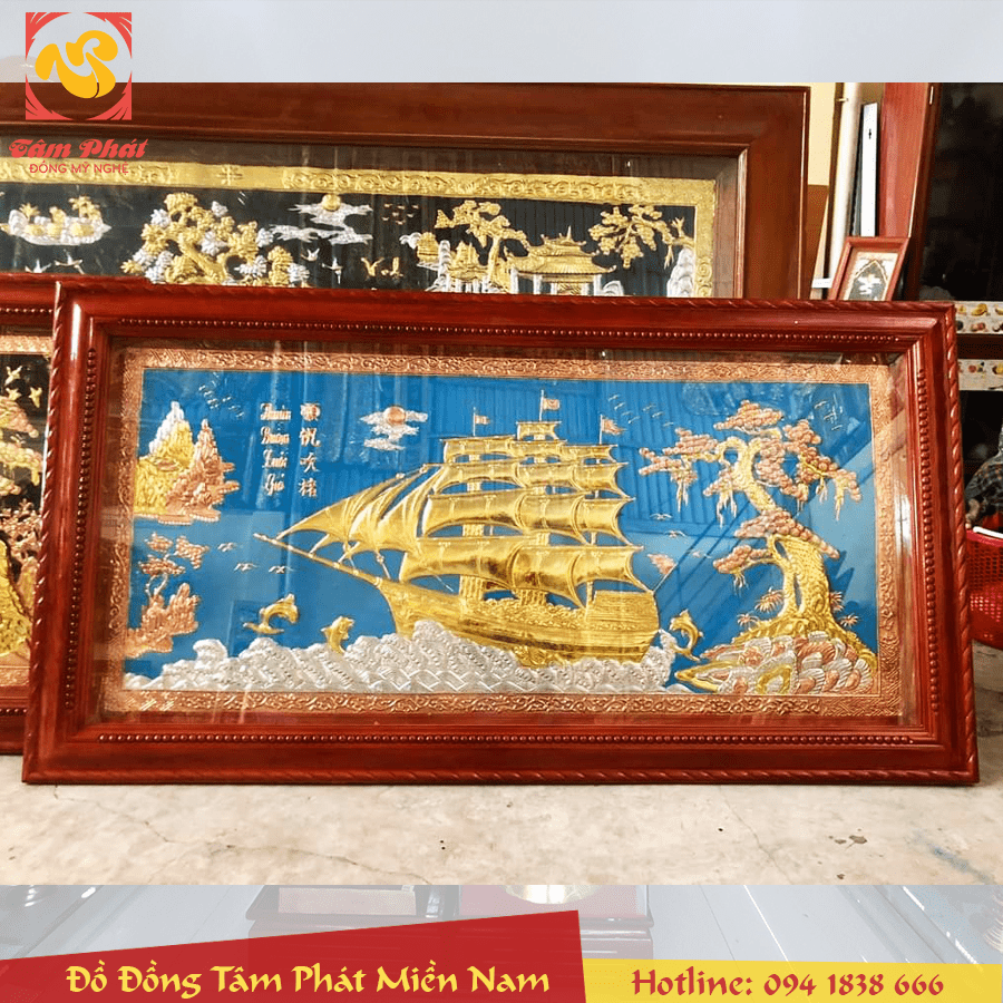 Tranh Thuận Buồm Xuôi Gió bằng đồng mạ vàng 24K