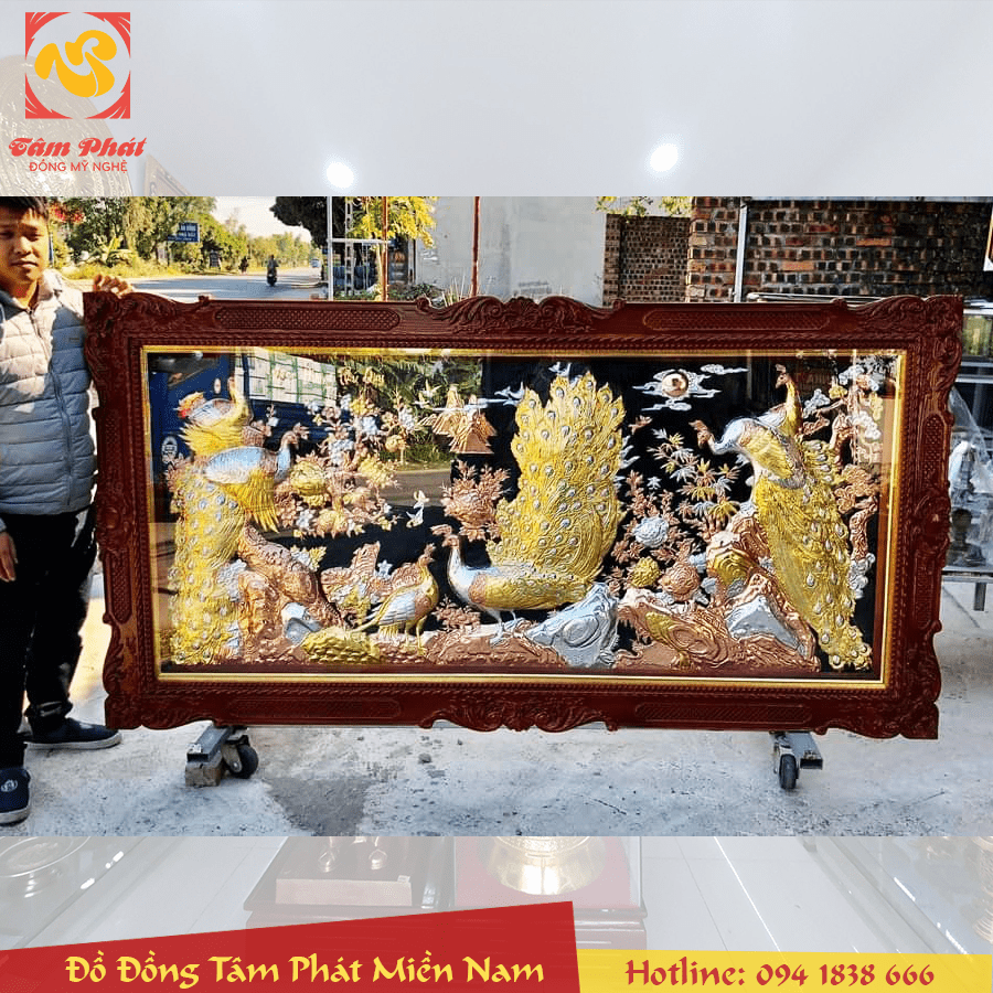 Tranh vinh hoa phú quý bằng đồng mạ vàng 24K